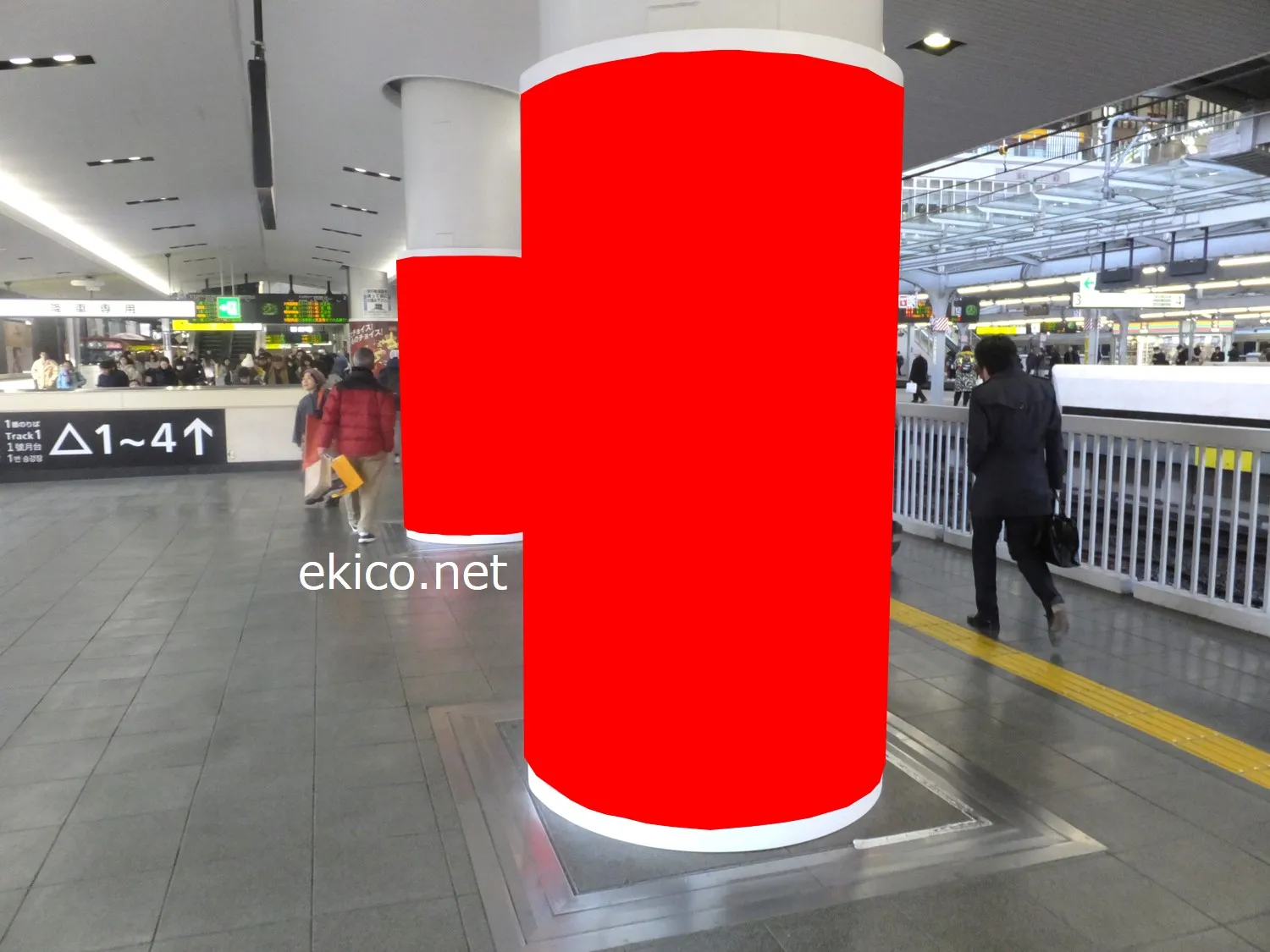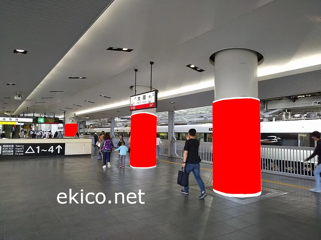 大阪駅で乗降客の多い環状線ホームで、御堂筋コンコースからの導線をカバーした柱巻広告です。