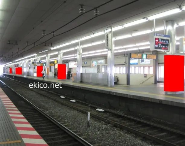 上り・下りホームの支柱に連なる吊り下げ型の媒体「京橋フラッグ」と、下りホームの柱を6本セットで掲出でき、上りホームのすべての場所から見通せる視認性の高い「アド・コラム京橋」を、お得な価格でセット掲出いたします。