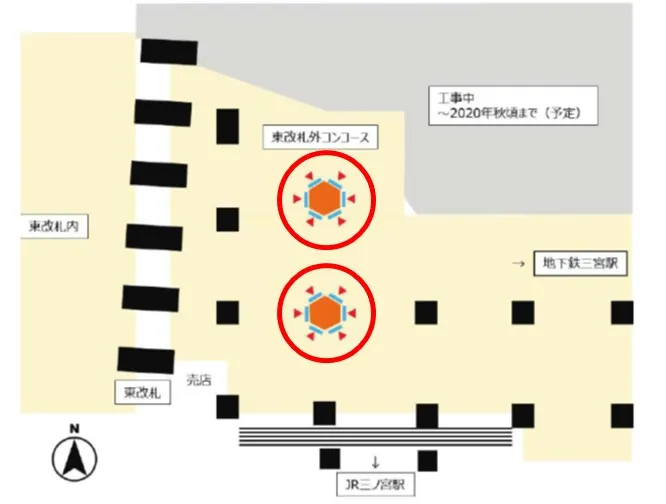 神戸三宮駅の東改札はJRや神戸地下鉄に直結しています。そのため、流動が絶えず、乗り換えで多くの人が利用します。