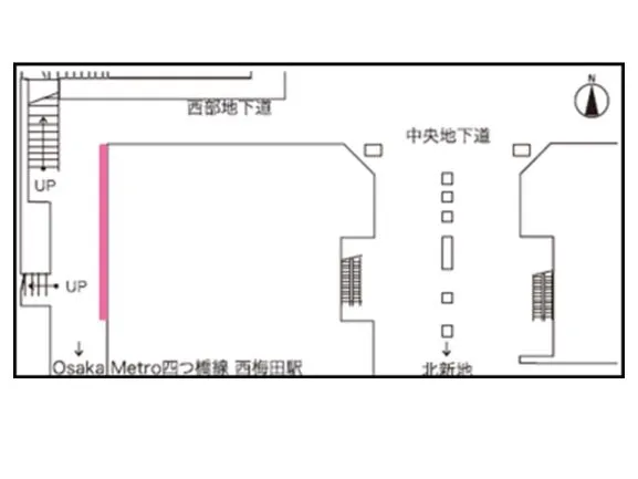 掲出場所はJR大阪駅桜橋口地下通路東壁面となります。朝夕のラッシュ時は阪神・Osaka Metro利用者などで人通りも多く、JR西日本では最長媒体となり、インパクトがあるシート広告となります。