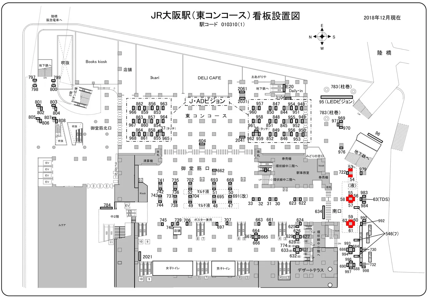 JR大阪駅1階の南改札外コンコースに掲出されます。昼夜問わず、人通りが多い場所です。ラッシュ時には大阪メトロ梅田駅の乗り換え客なども多く利用しています。