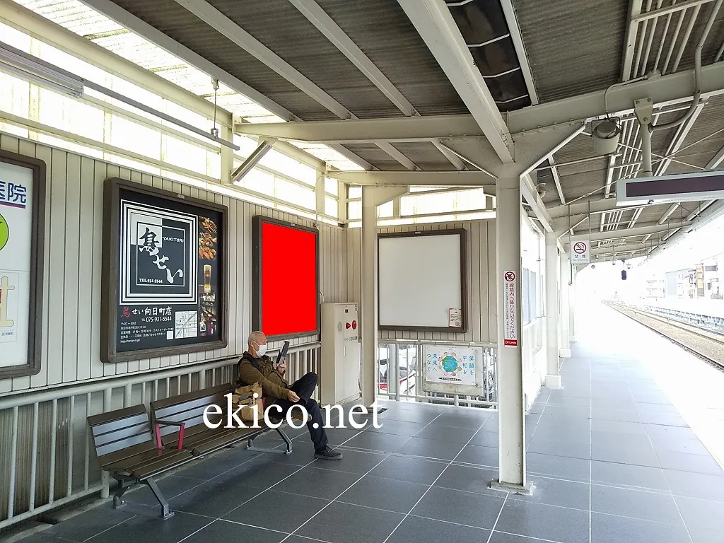 阪急東向日駅の京都河原町方面のホームにある看板です。