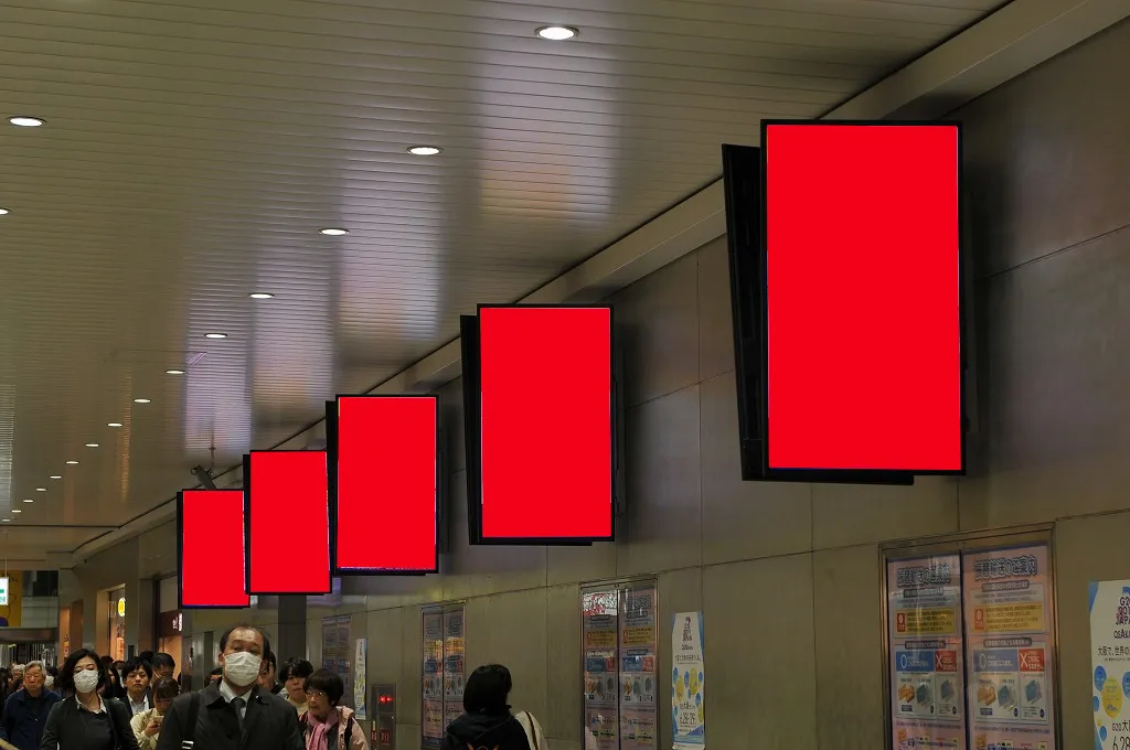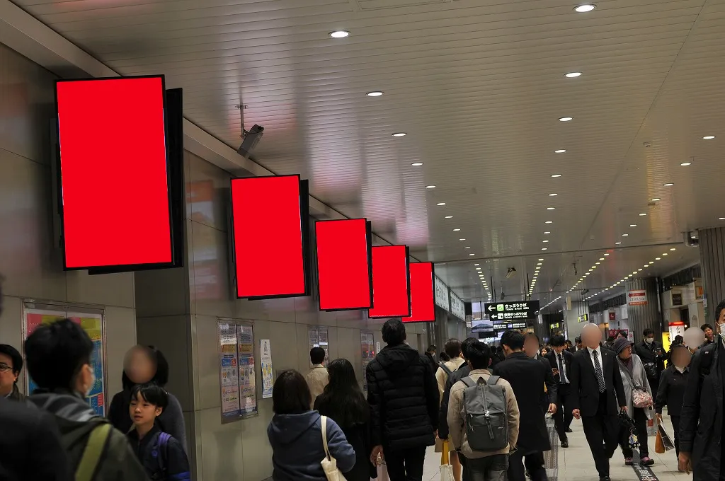 新大阪駅の改札外3階東西通路にデジタルサイネージを10面掲出。 在来線は勿論、新幹線利用者も目にする媒体となります。