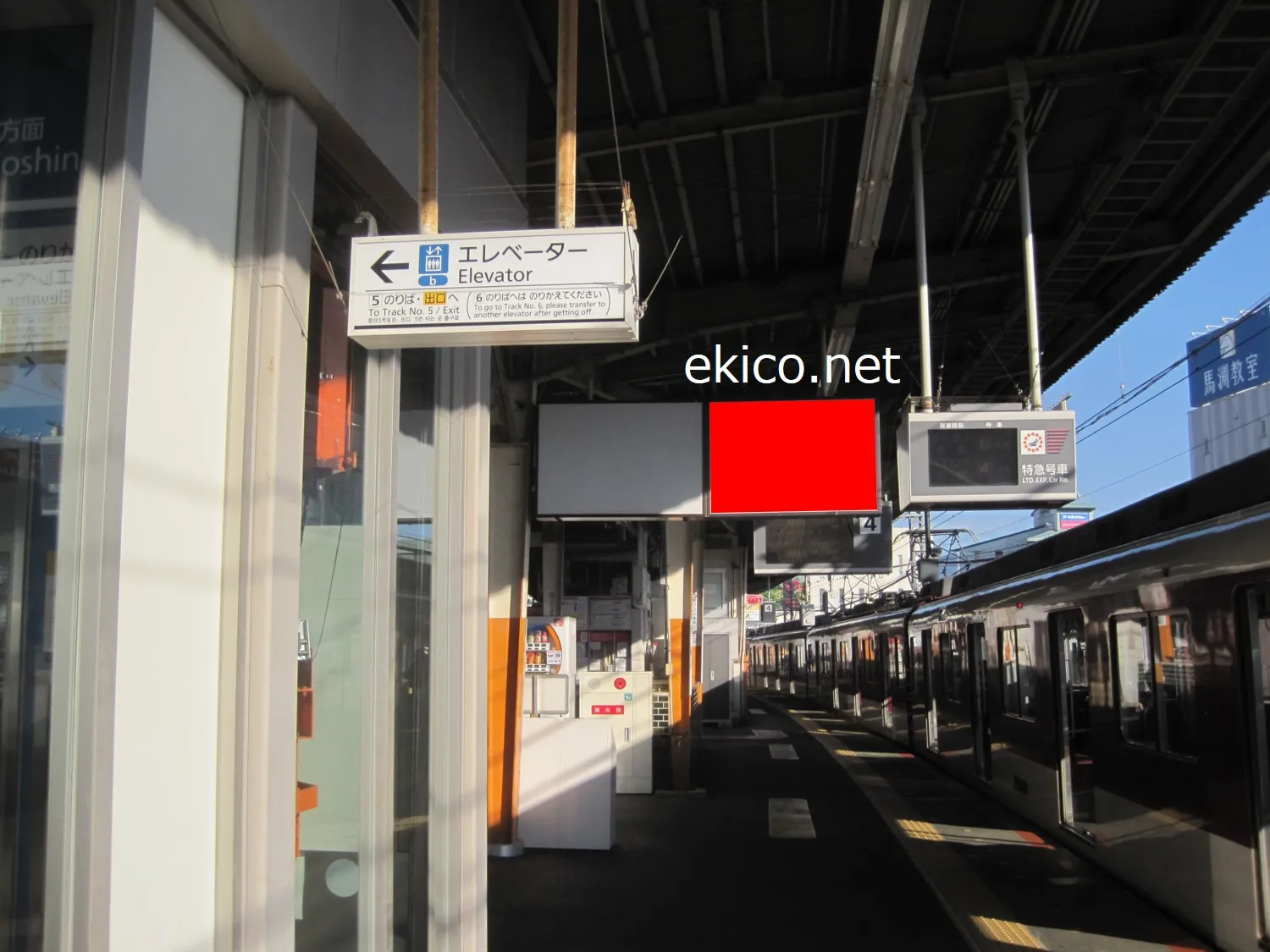 改札へ向かう階段付近にあり、頭上に設置されています。