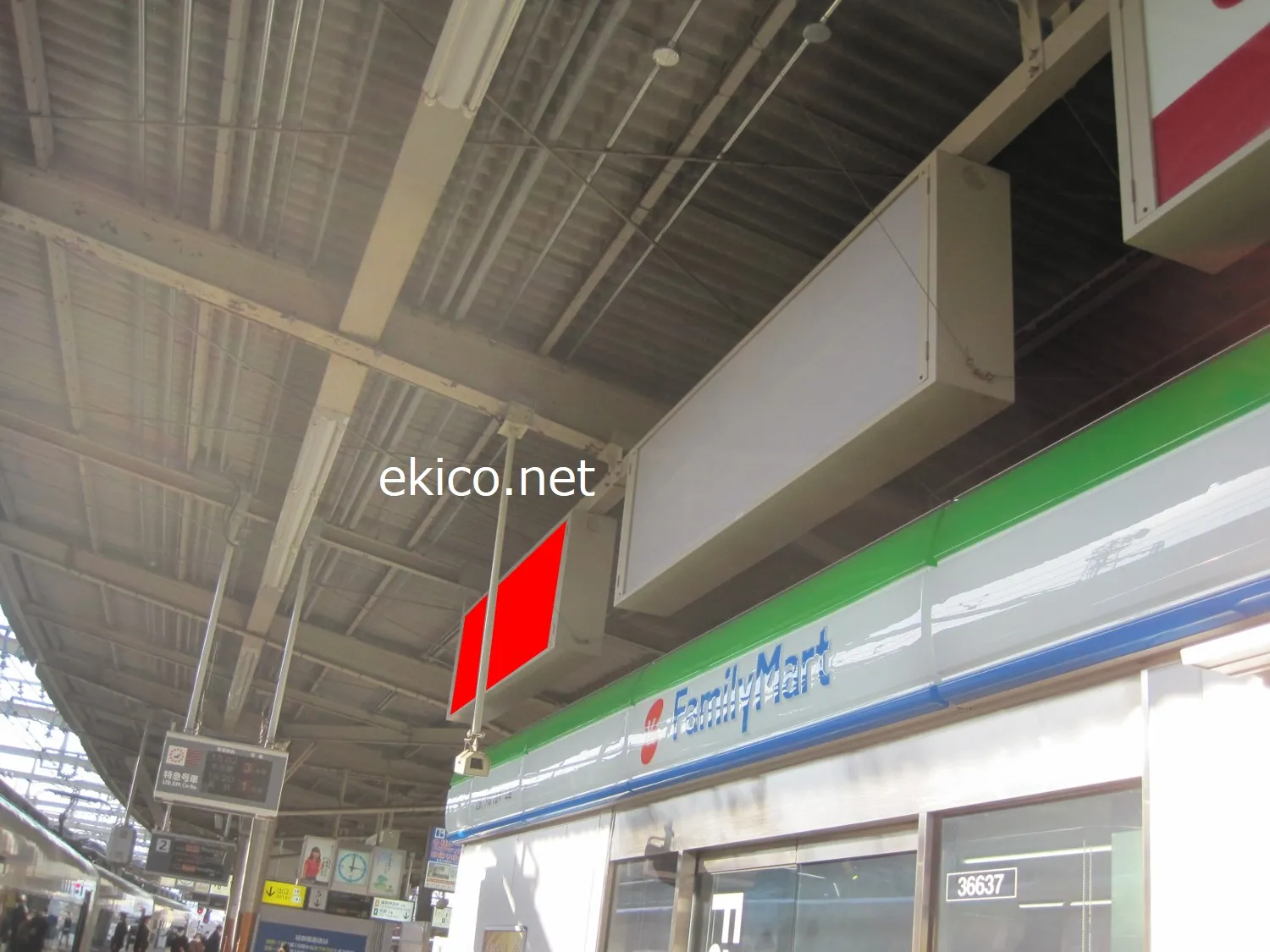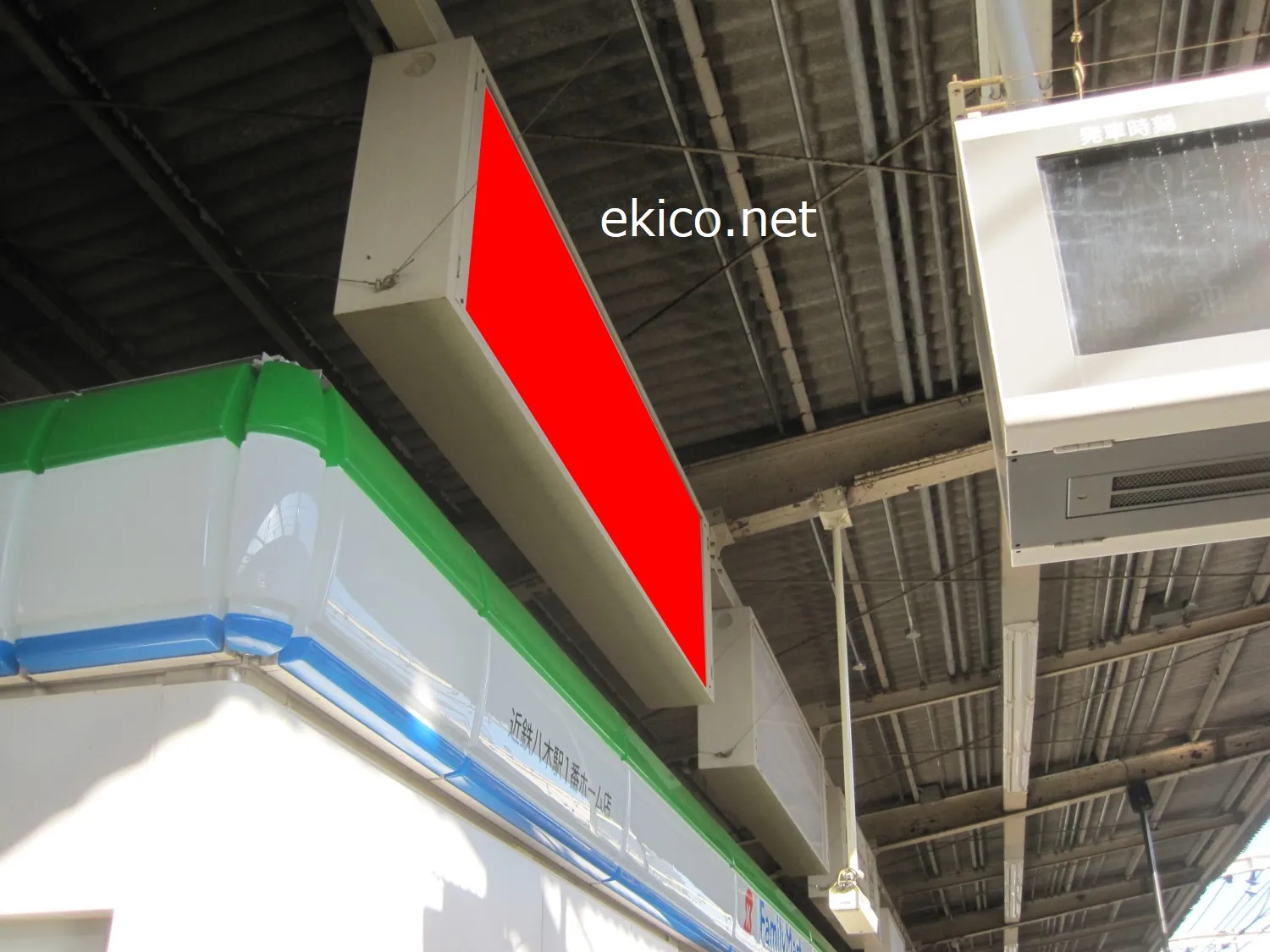 名古屋方面行きホームの売店の上に設置されています。