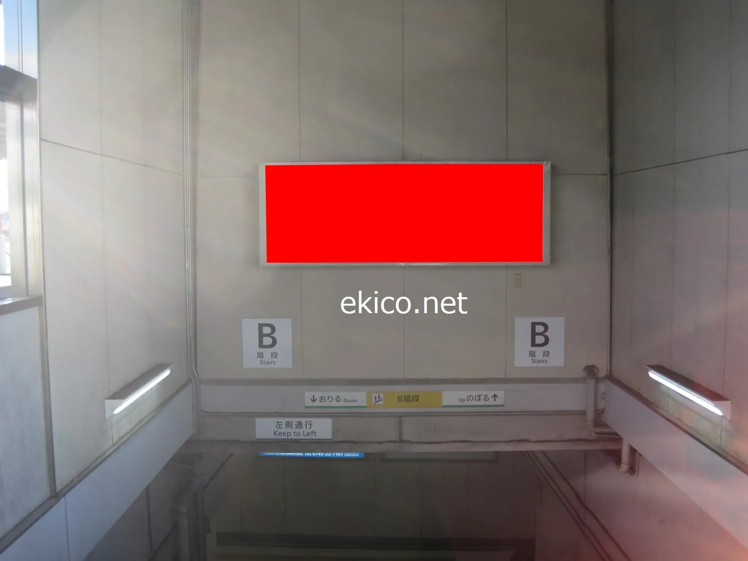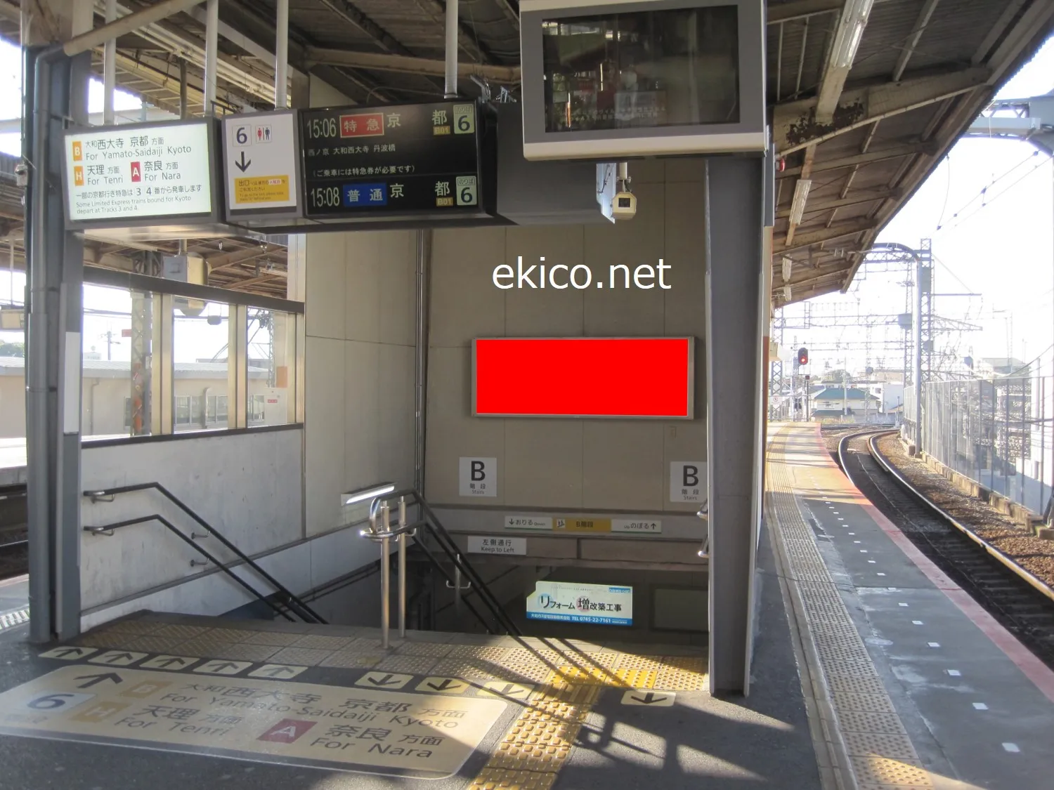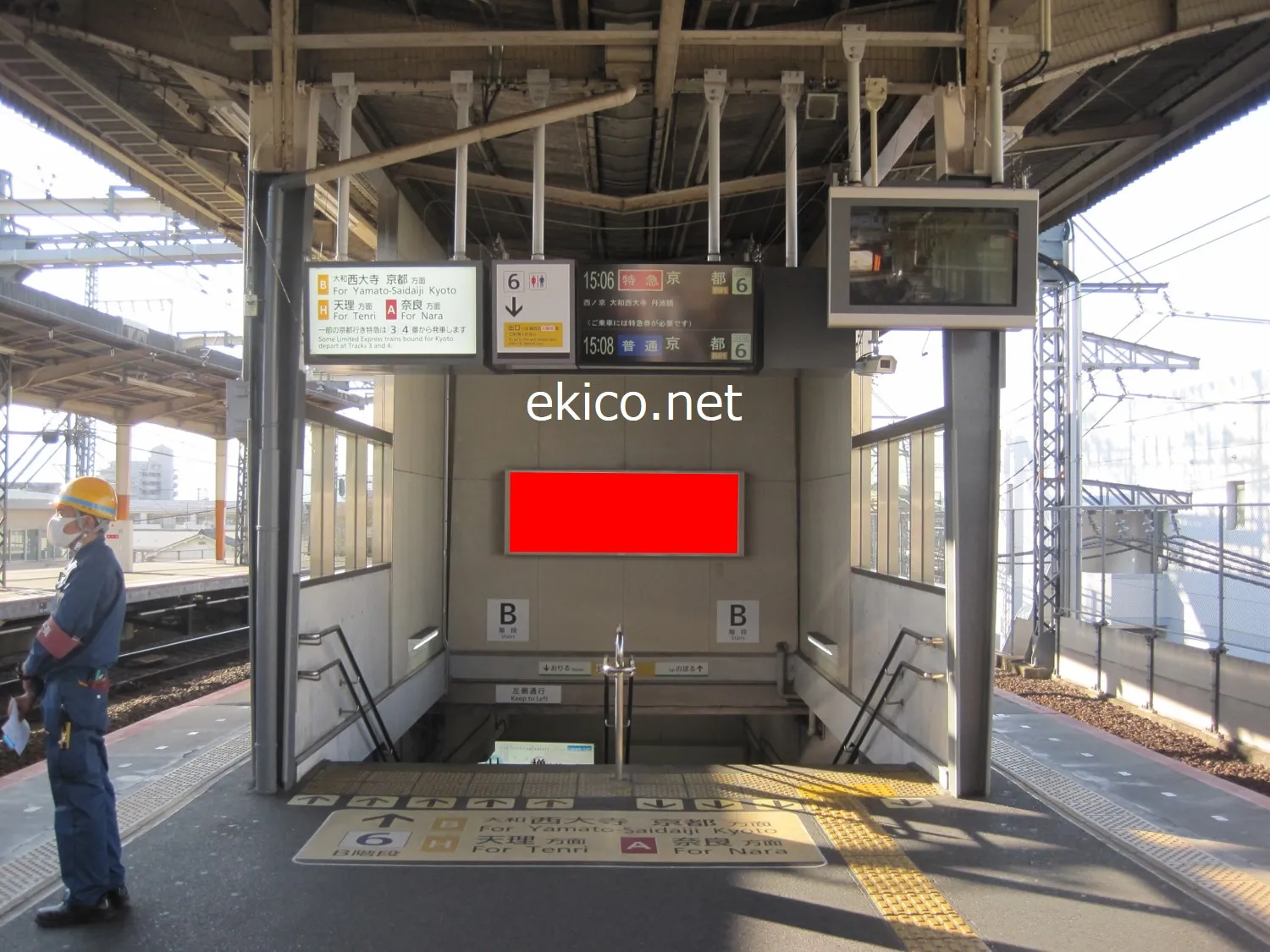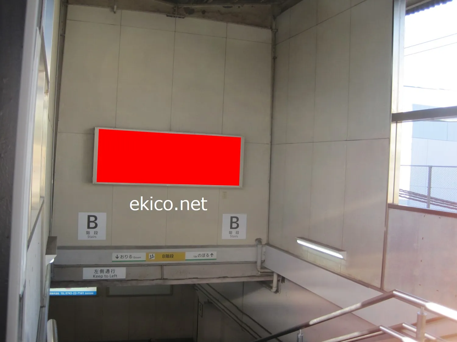 名古屋行きホームと橿原線の乗り換え時に通る階段に設置されています。