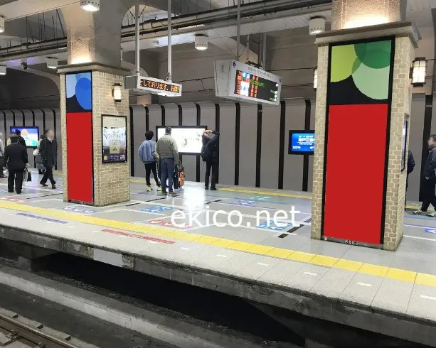神戸三宮ホーム柱パネルと神戸三宮バーストップを合わせてインパクトのある駅ジャック媒体です。