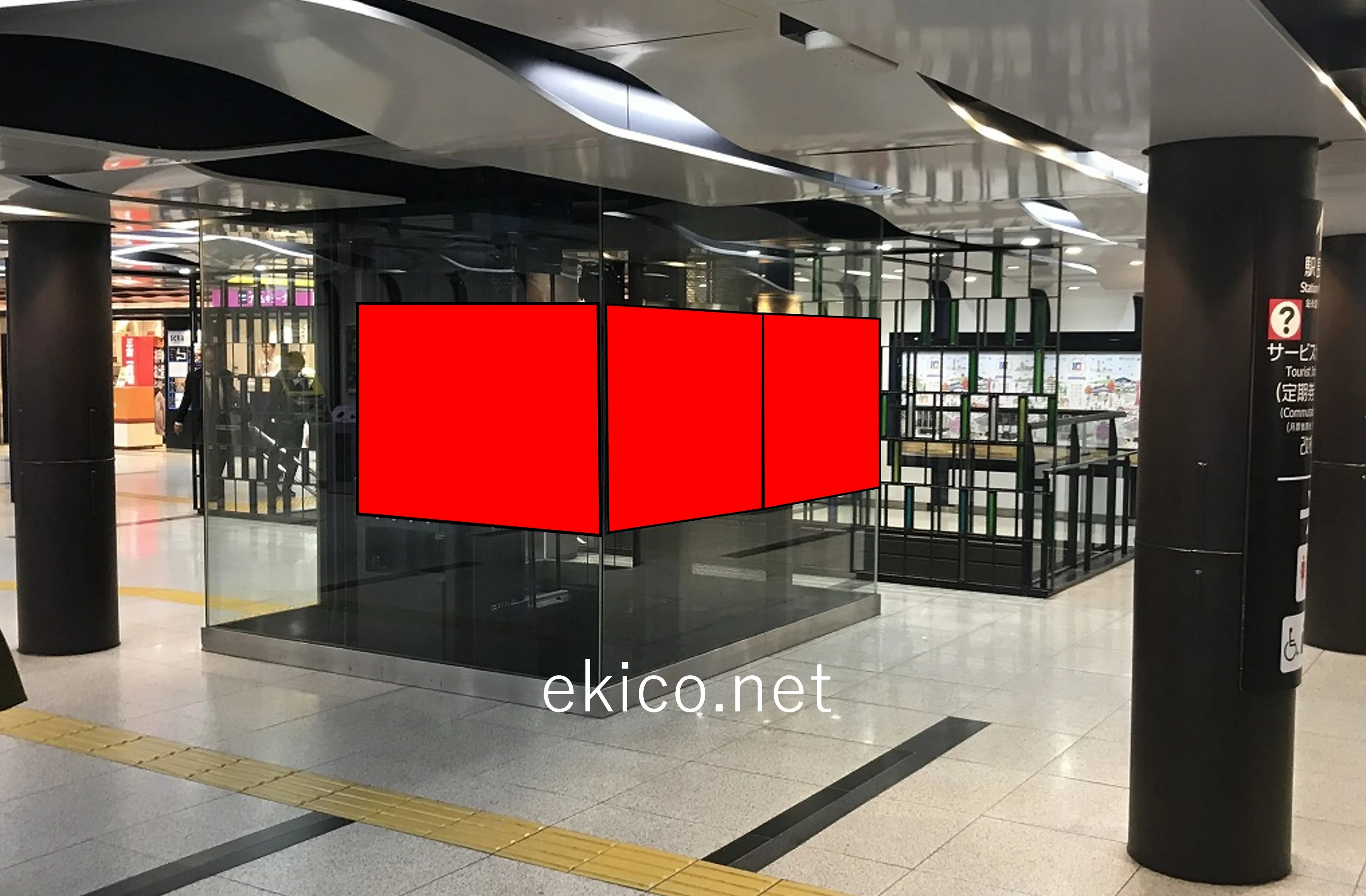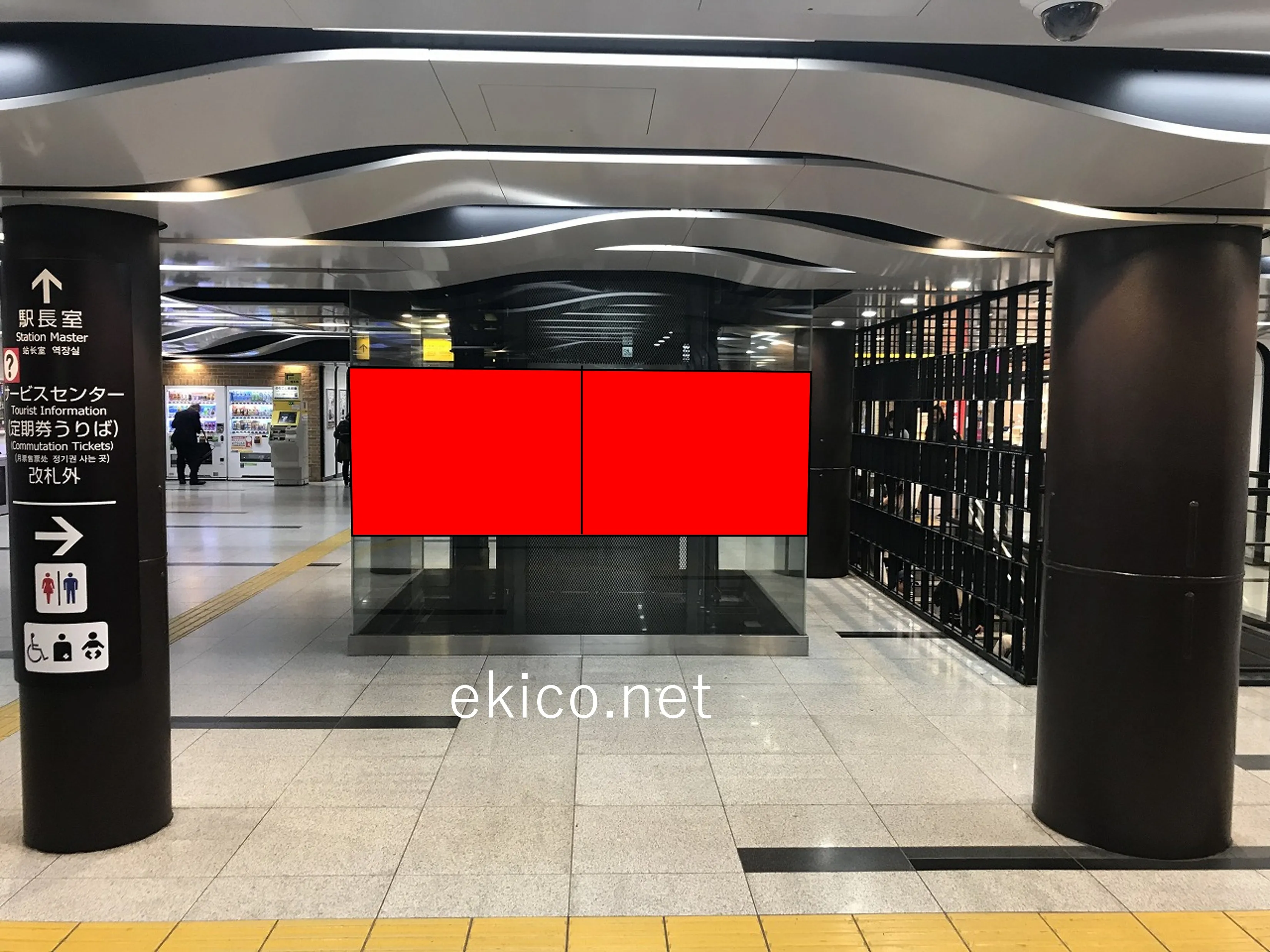神戸三宮駅西口改札内に設置されているエレベーターガラス面にB0ポスターを3枚掲出ができるインパクトのある媒体です。