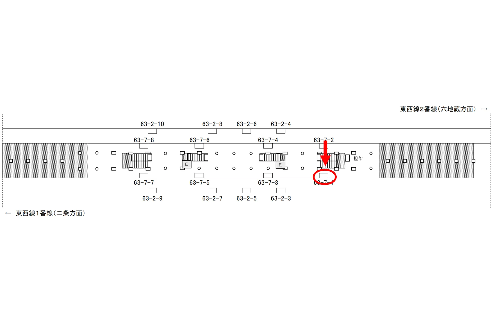 二条駅・太秦天神川駅方面へ向かう電車の乗降口付近に設置されています。