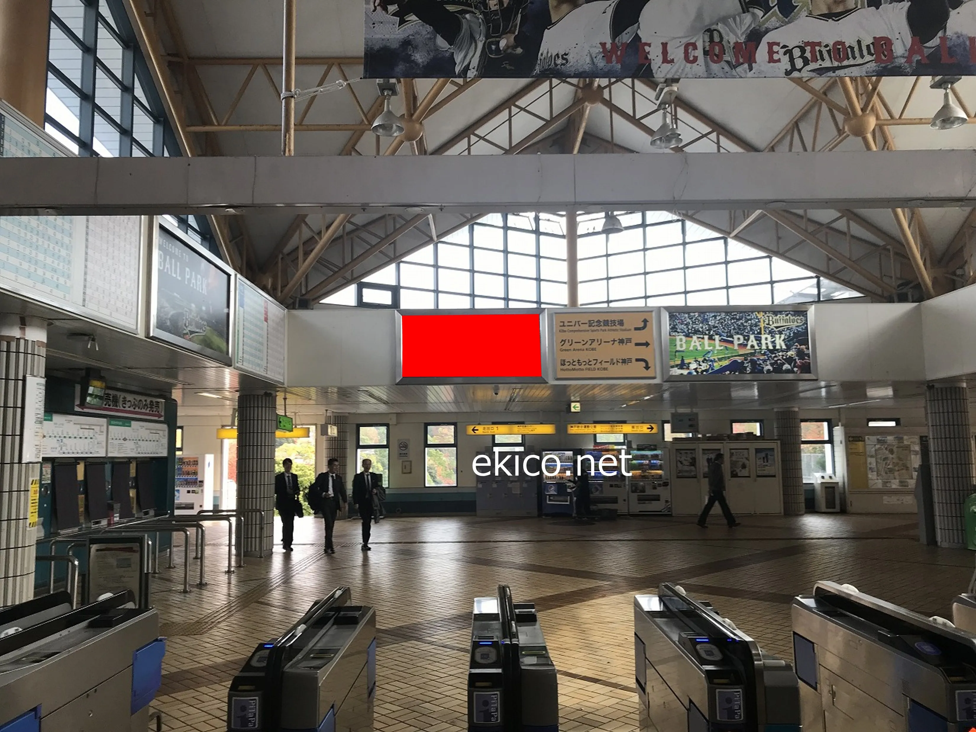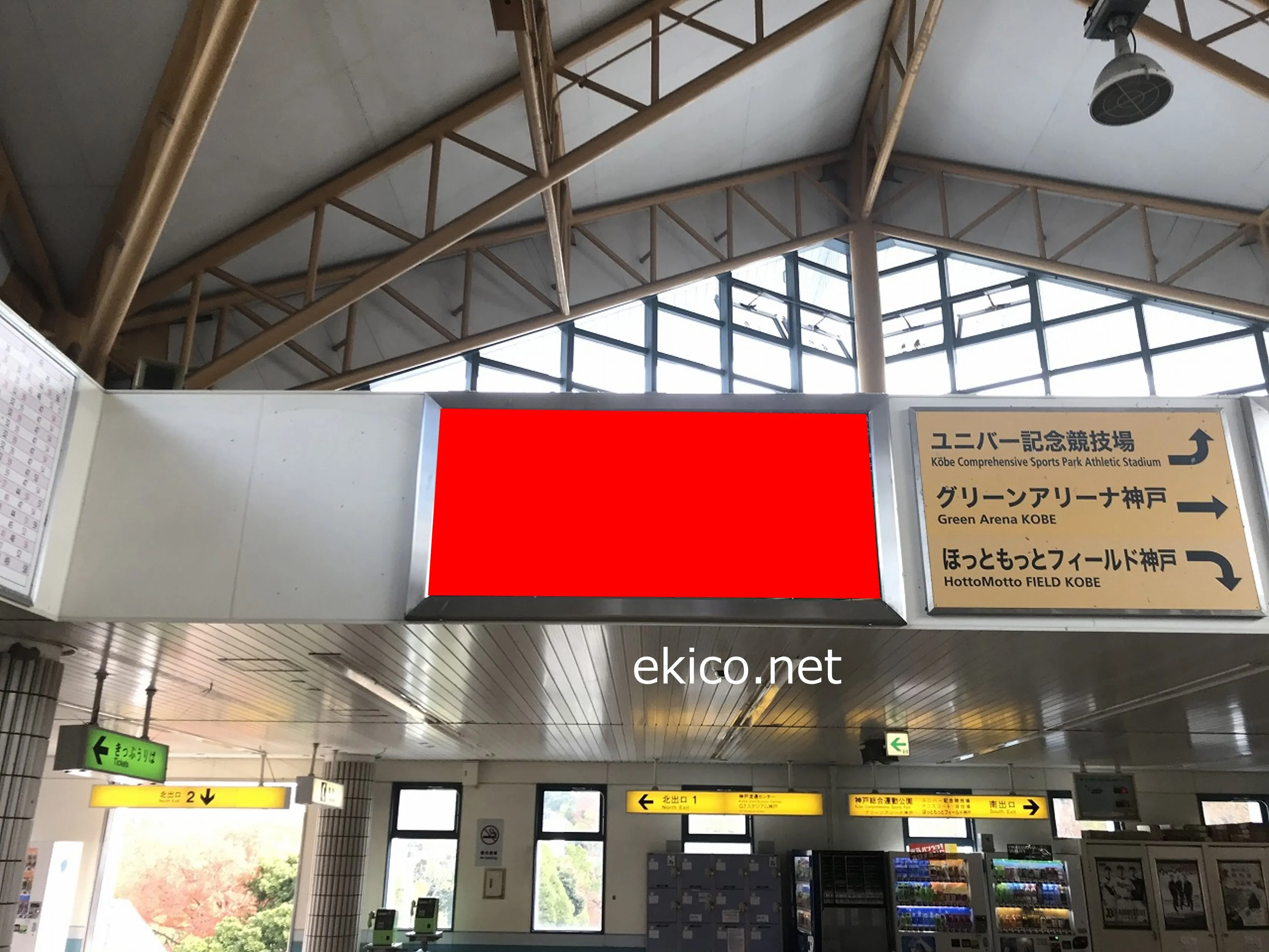 神戸地下鉄総合運動公園駅のコンコースに設置されている電照看板広告です。