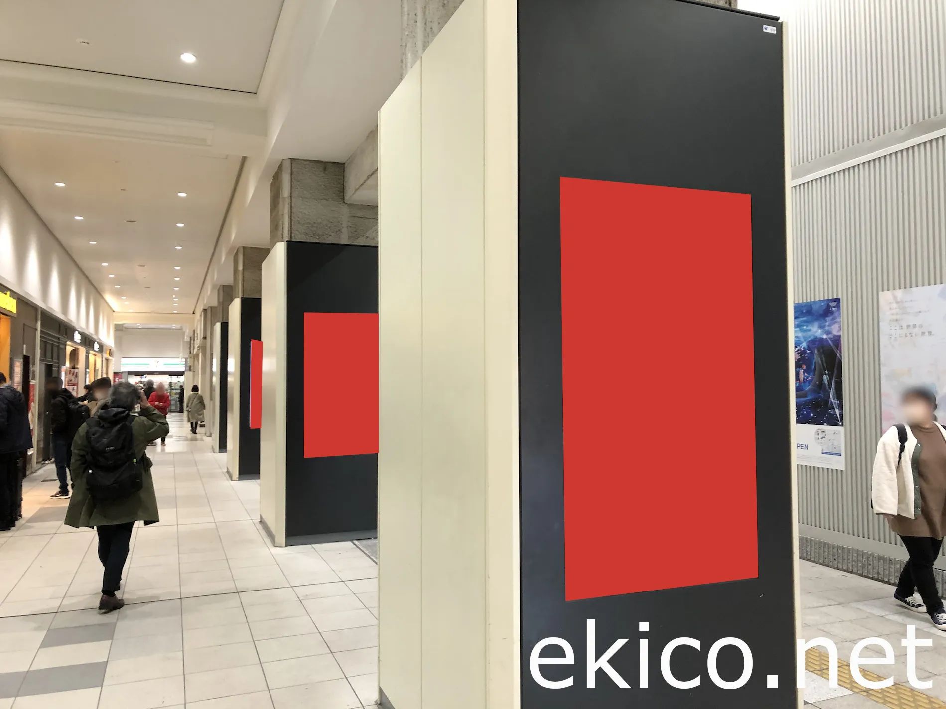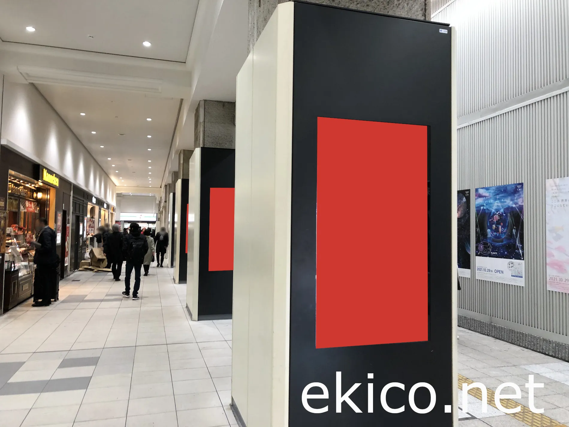 JR三ノ宮駅の東西通路に設置されているデジタルサイネージです。JRの利用者以外にも、ポートライナーへの乗換えや神姫バスの利用者なども利用する通路です。