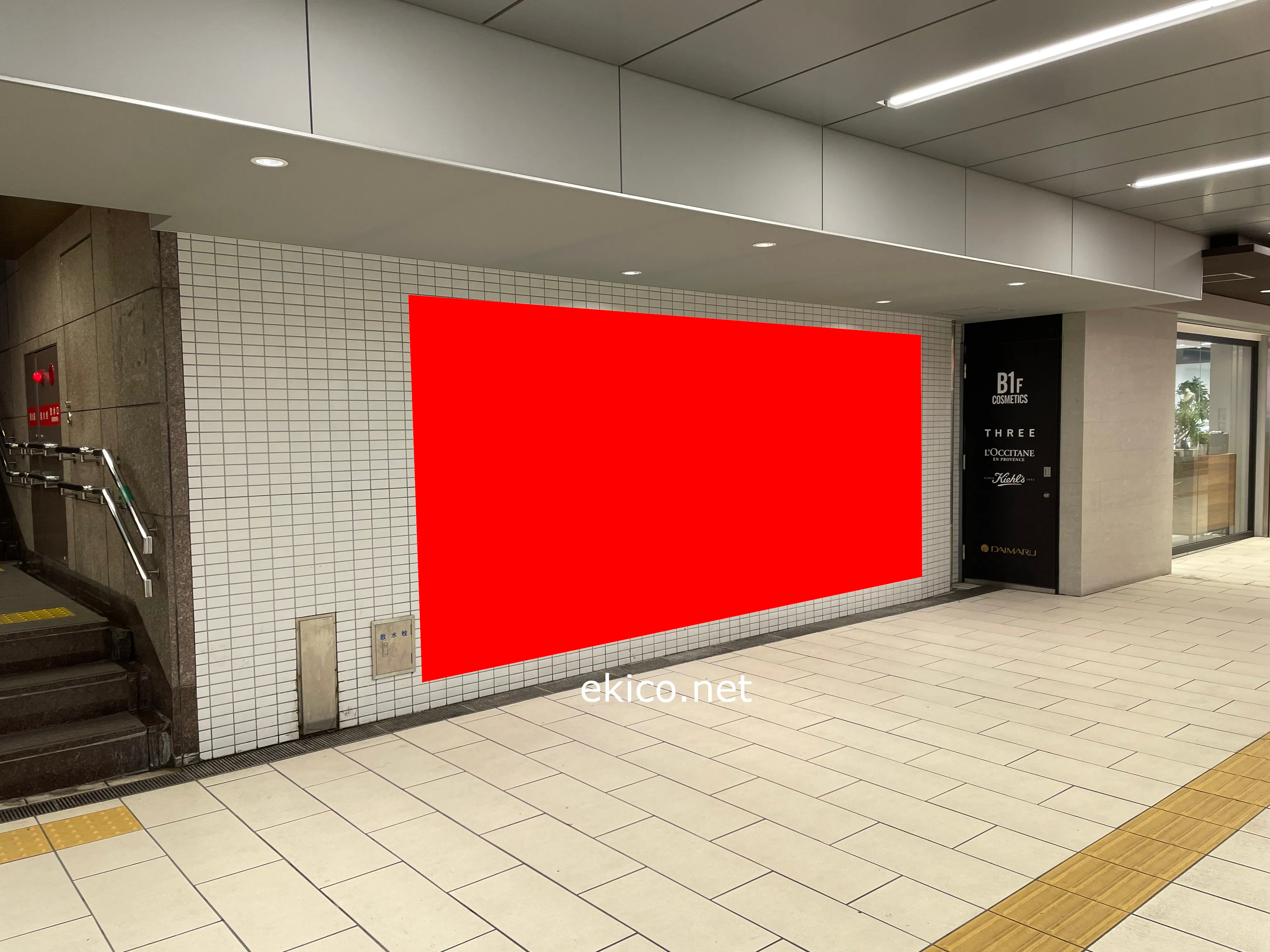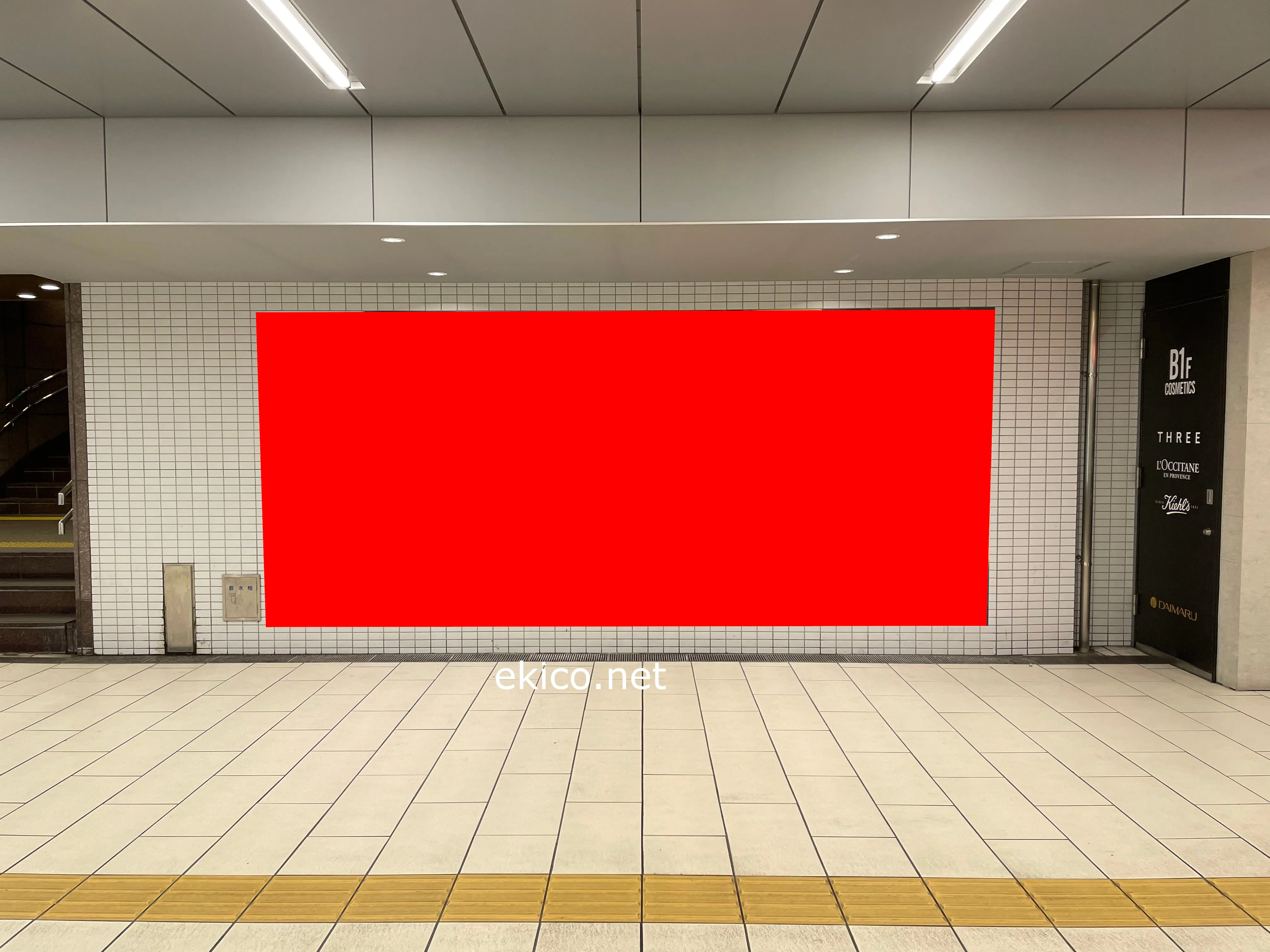 心斎橋駅の通路に掲出される大型シートです。デジタルサイネージとの併用でかなりインパクトのある展開ができます。