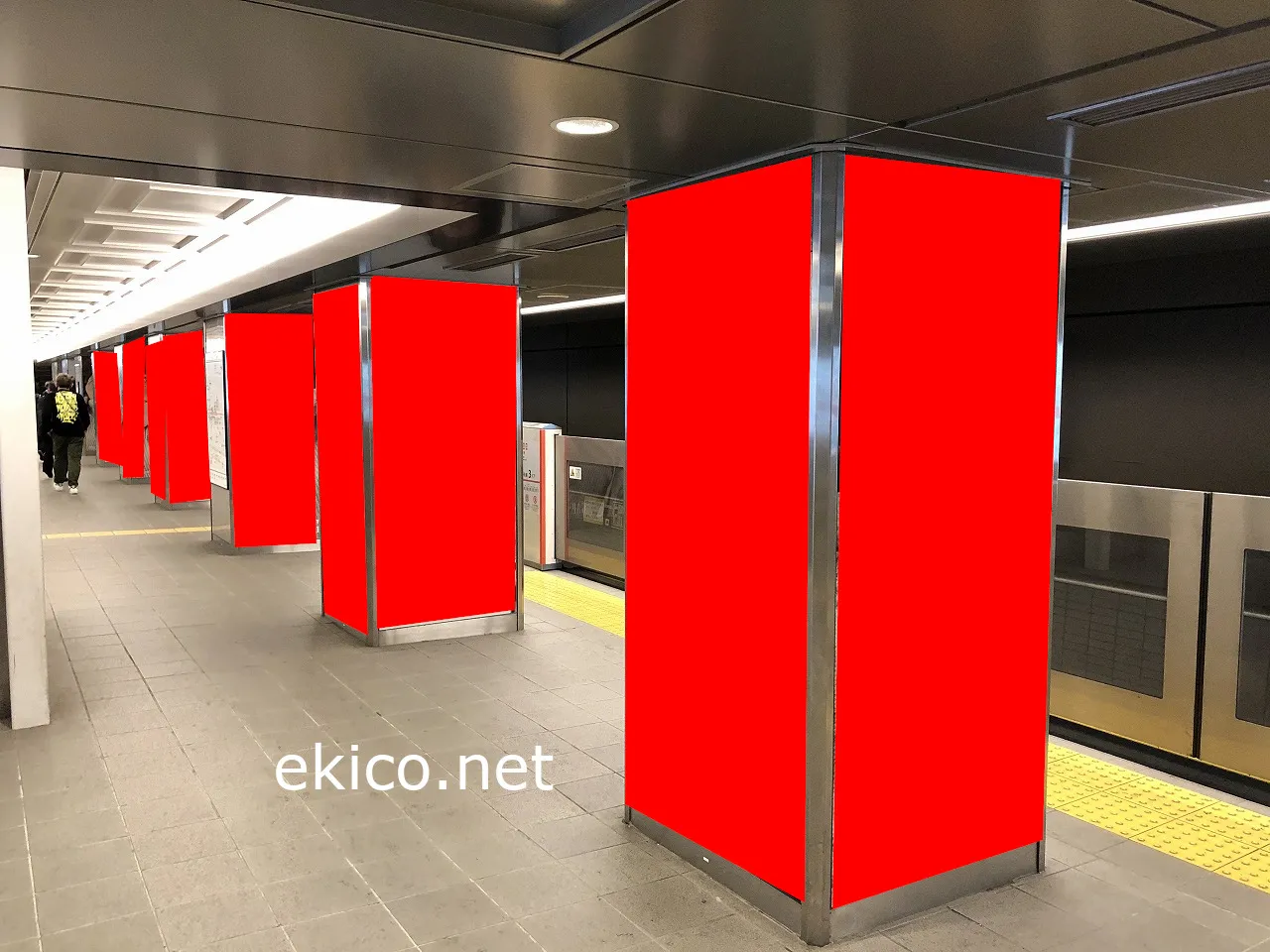 改良工事された心斎橋駅のホーム柱面に掲出されるシートです。15柱39面と面数も多く、デジタルサイネージ【心斎橋ホームビジョン】との併用でかなりインパクトのある展開ができます。