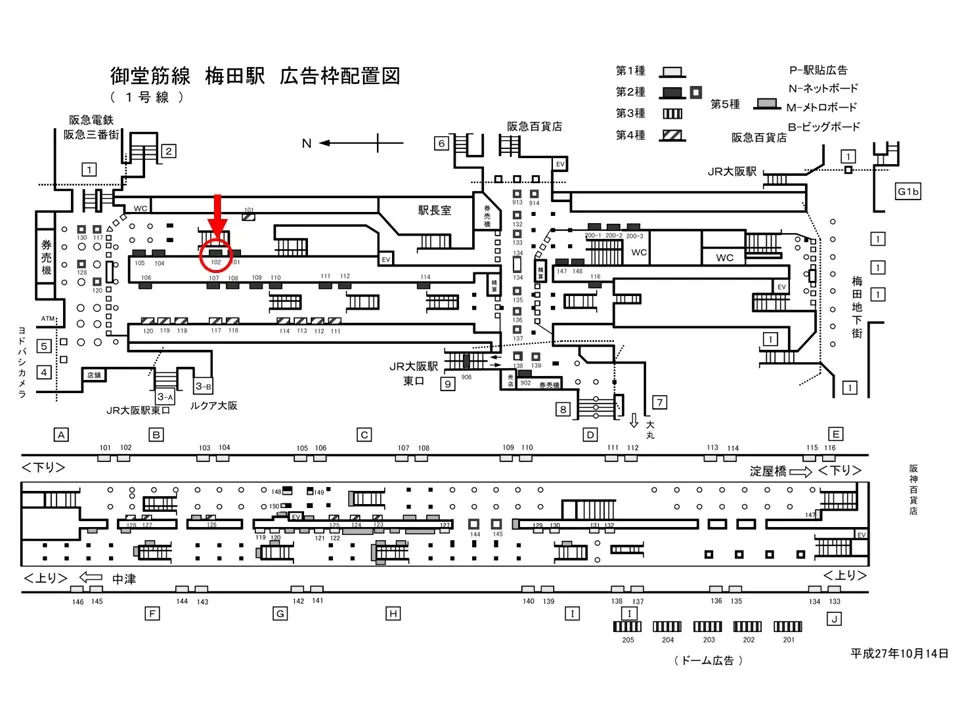 主に梅田駅の北改札を利用する利用者に訴求ができます。