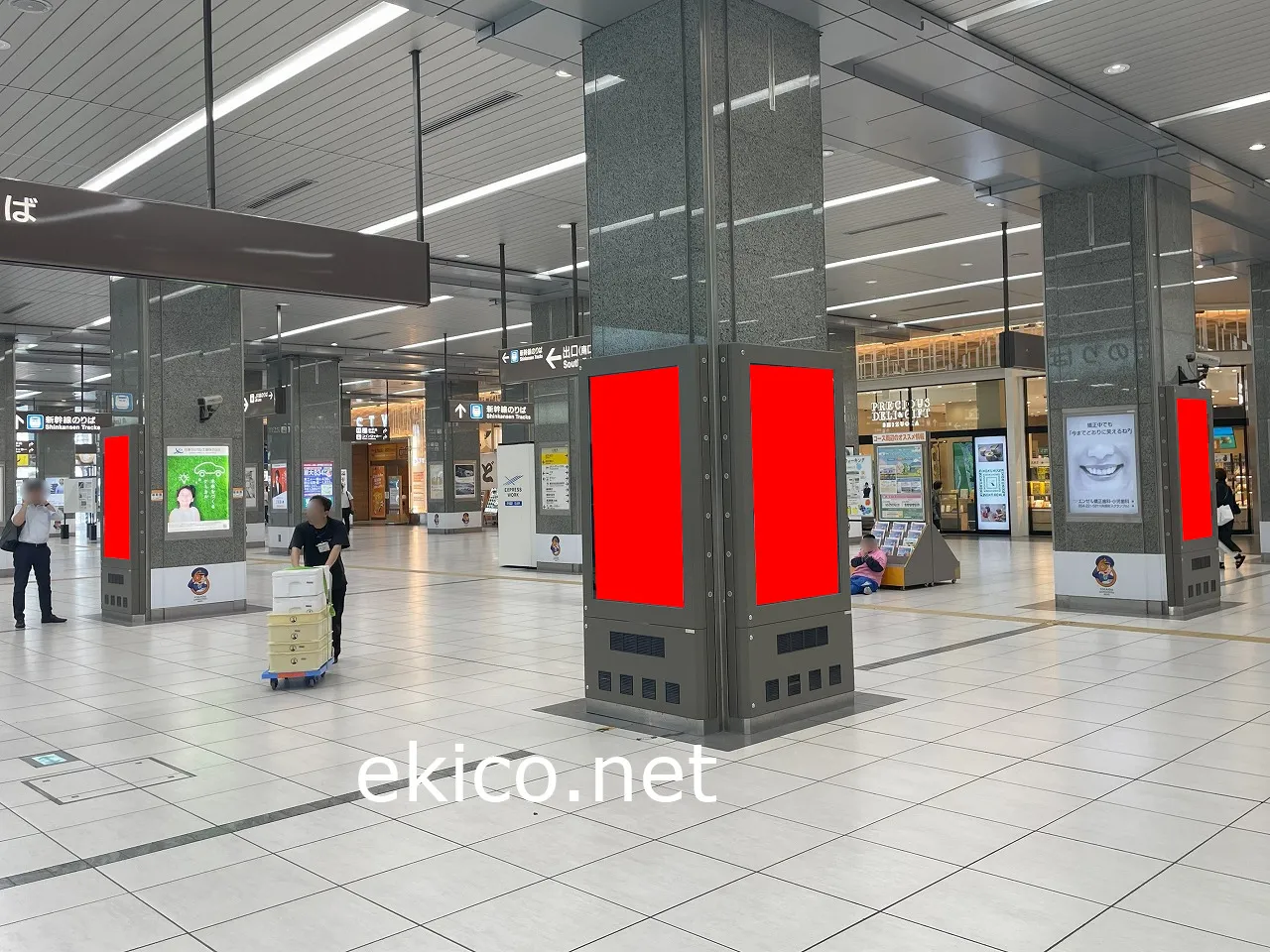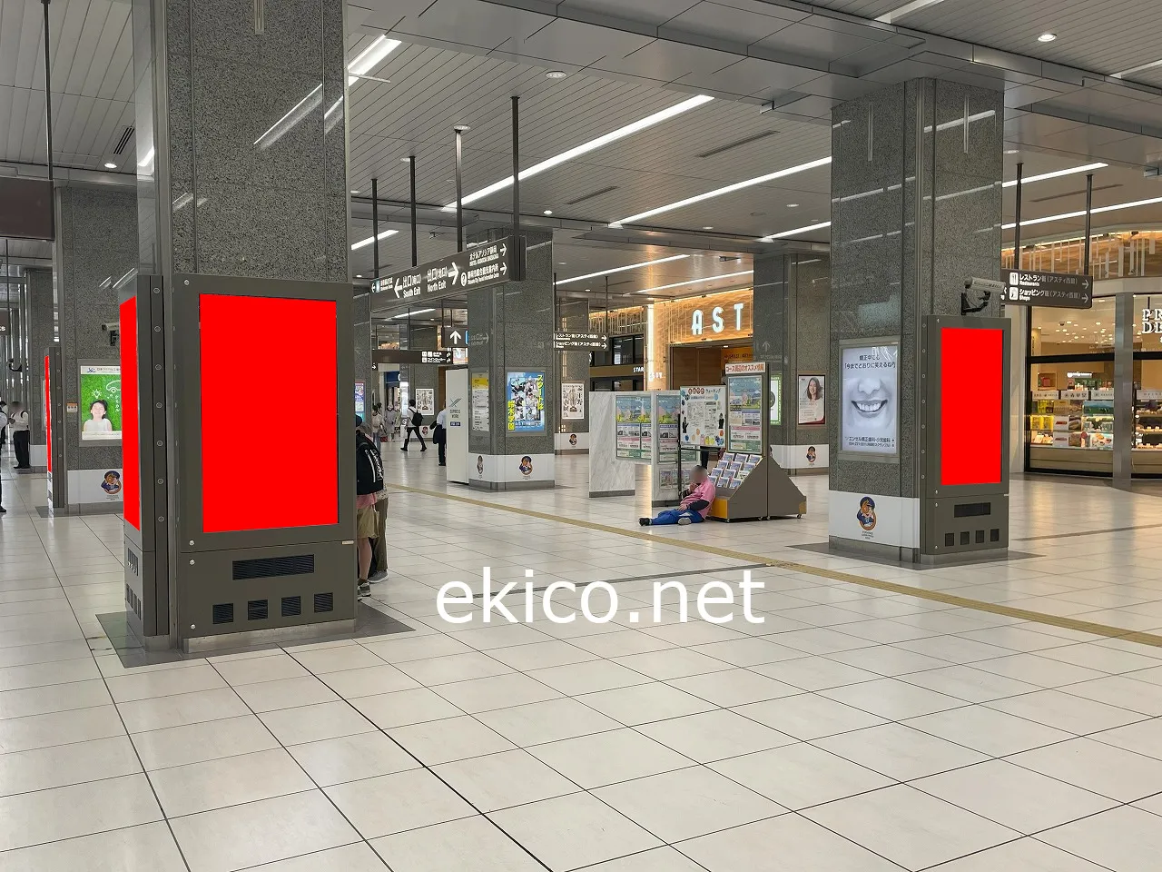 (在来線)静岡駅の改札を出てすぐの柱面など計4面に広告掲出されるデジタルサイネージ広告です。歩行者の多い面に広告面が向いて、比較的安くで掲出できる広告です。
