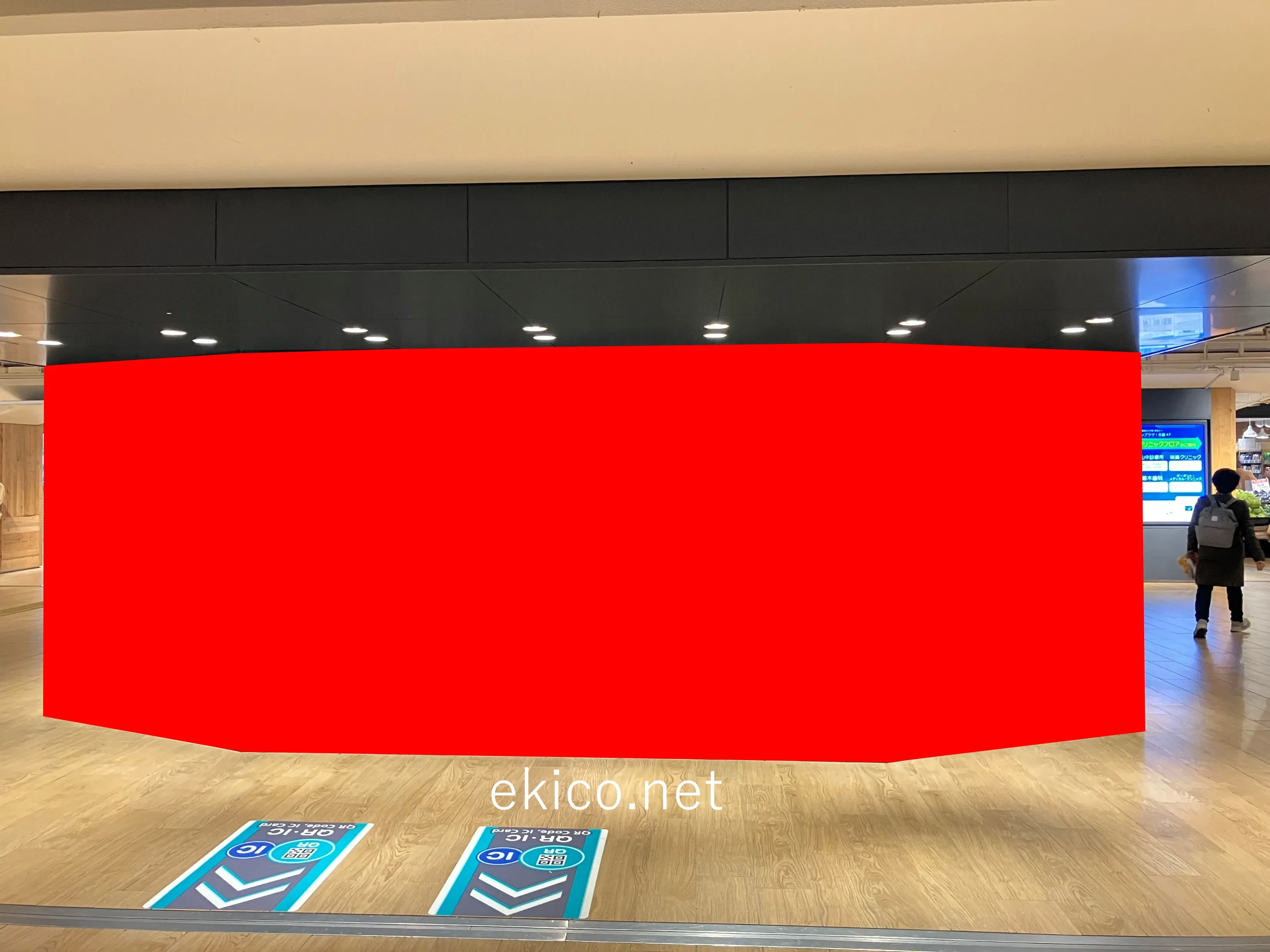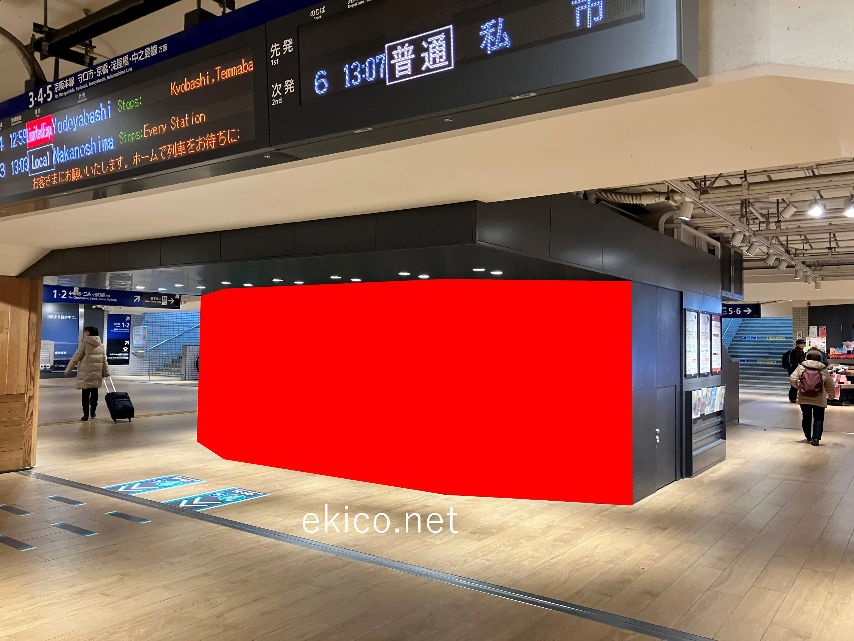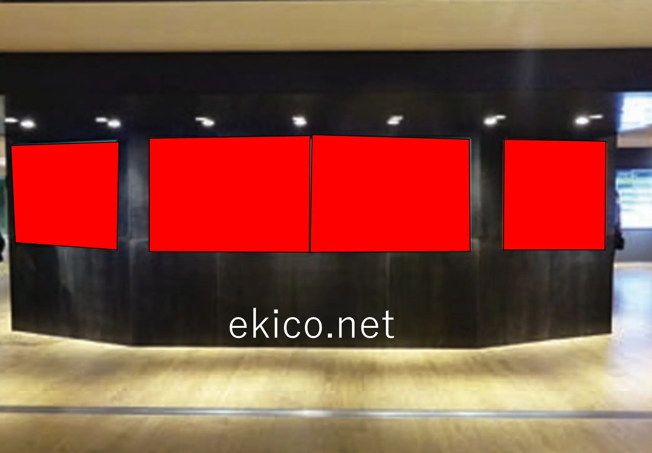 中央改札口を入った真正面に位置した駅貼ポスターです。黒系パネルの壁面に直接掲出されるため、目立ちやすく視認率が高い広告媒体として魅力的です。