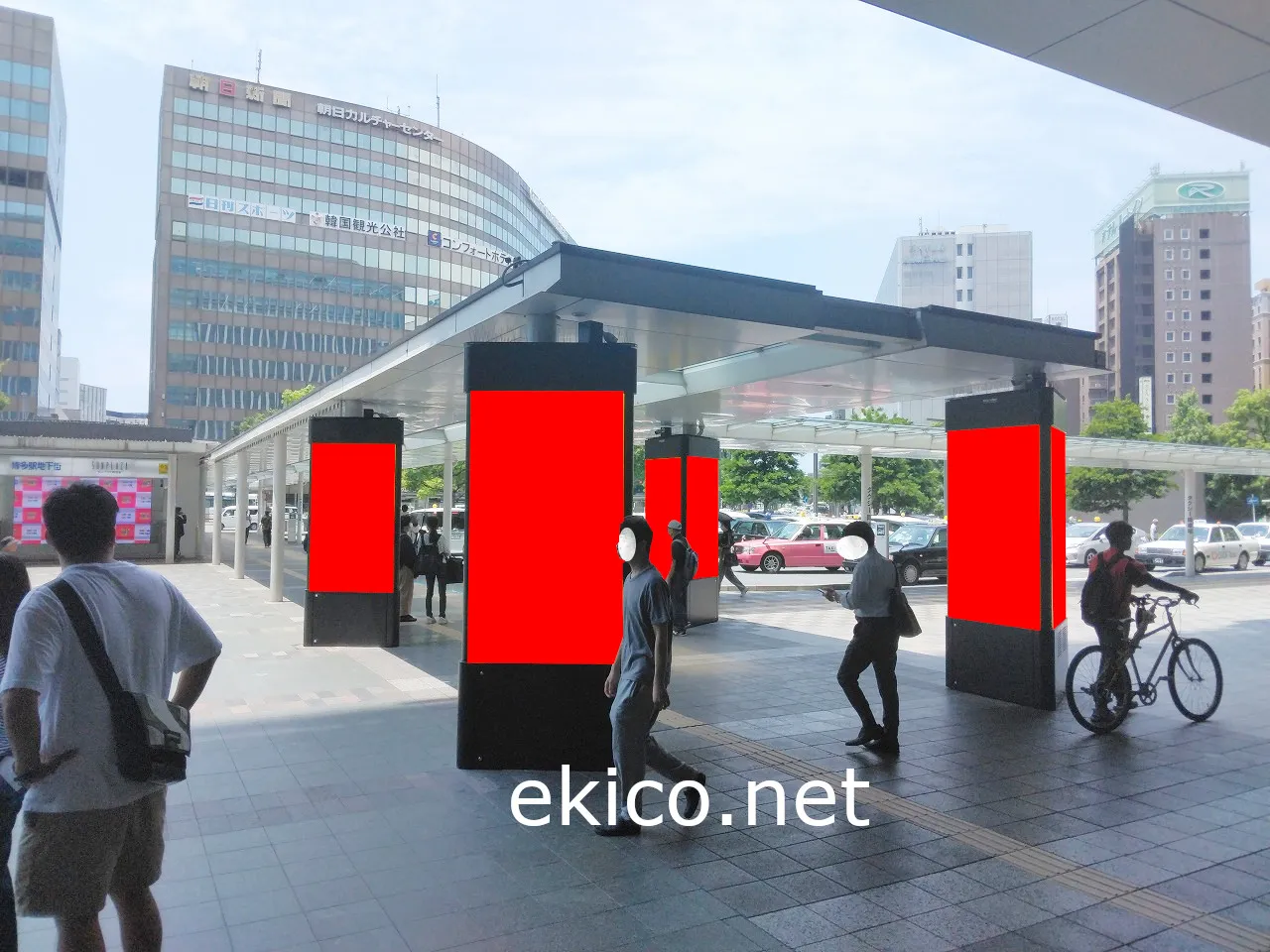 駅周辺のオフィス街やタクシー乗り場、バス乗り場などを訪れる駅利用者に向けたPRに適します。