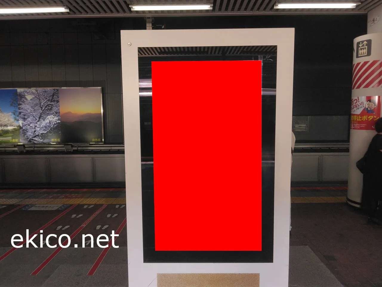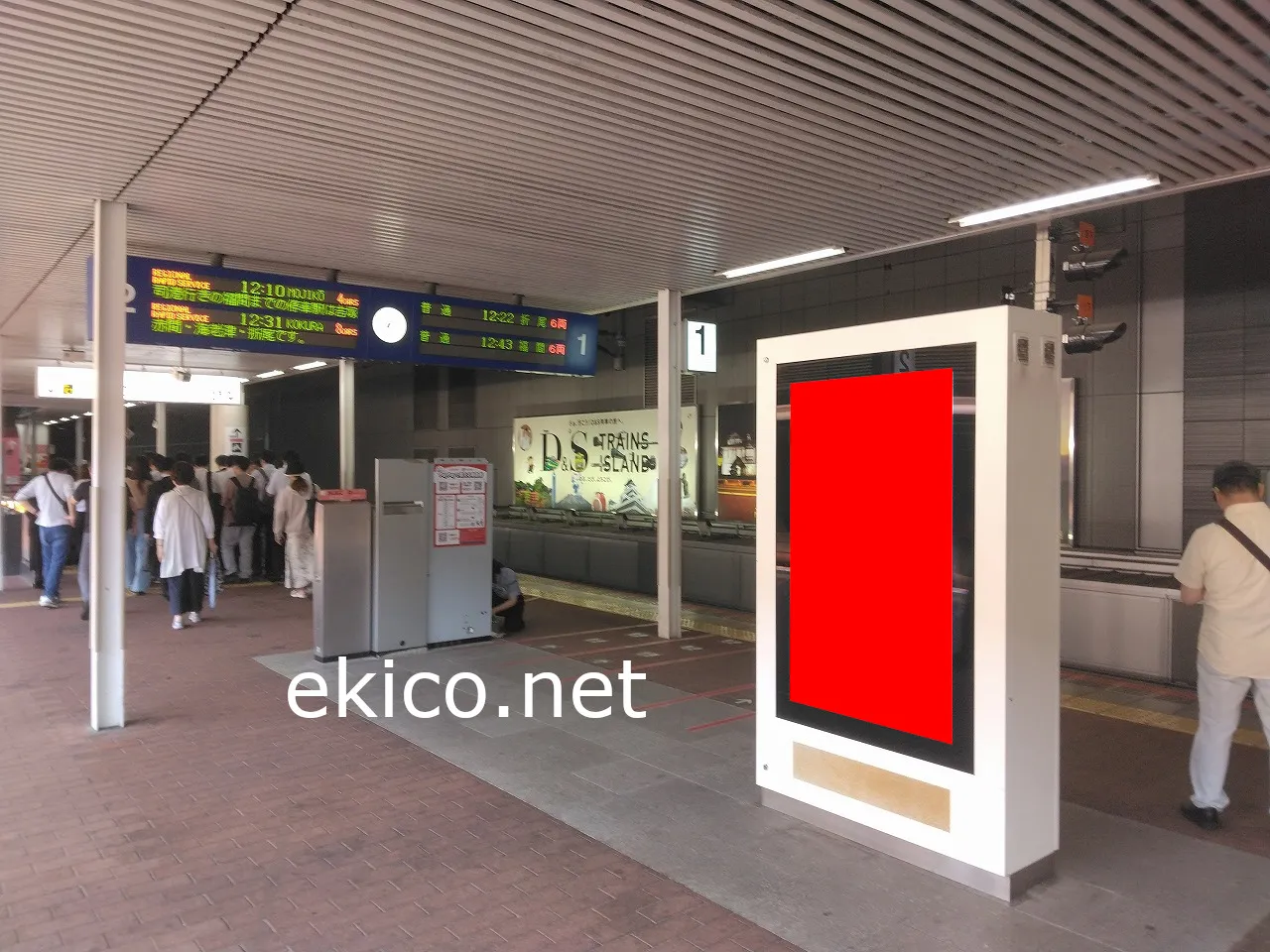 JR博多駅のホームに設置されています。上り・下りの利用者の両方へ訴求ができるデジタルサイネージ広告です。