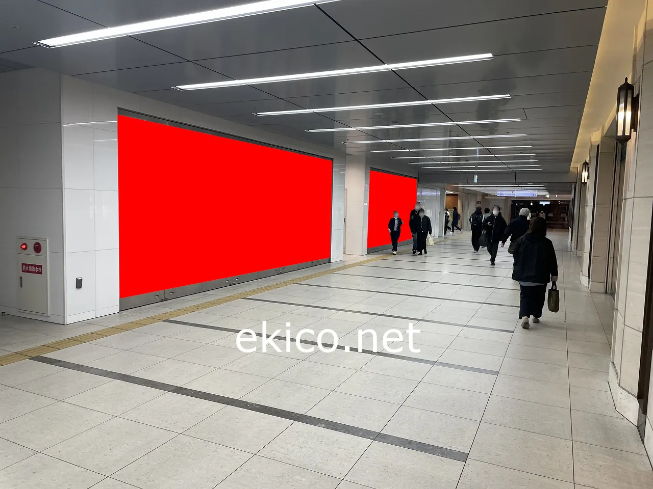 JR博多駅の改札外通路(サブコンコース)にて、全長26mもの大型シートの広告掲載ができます。