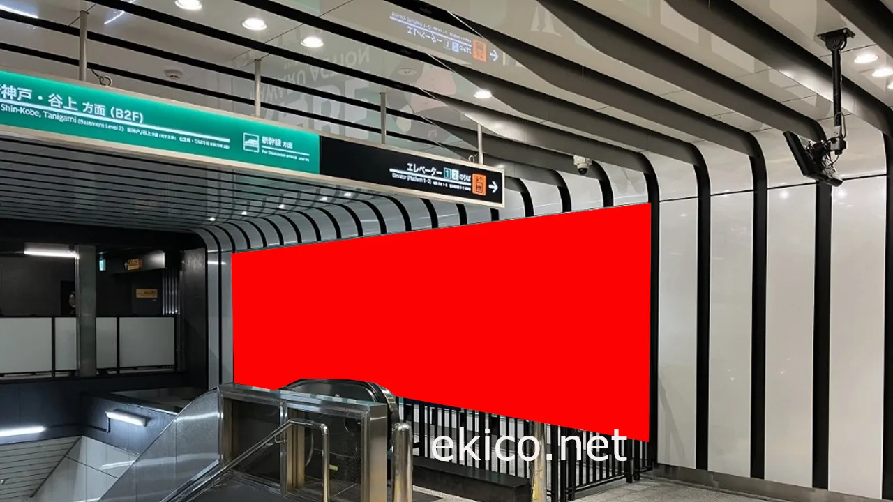 白とグレーを基調とした都会的で洗練された空間が広がり、明るく生まれ変わった駅で上りエスカレーター側壁に大型シートを掲出され利用客の目に留まりやすい媒体となります。