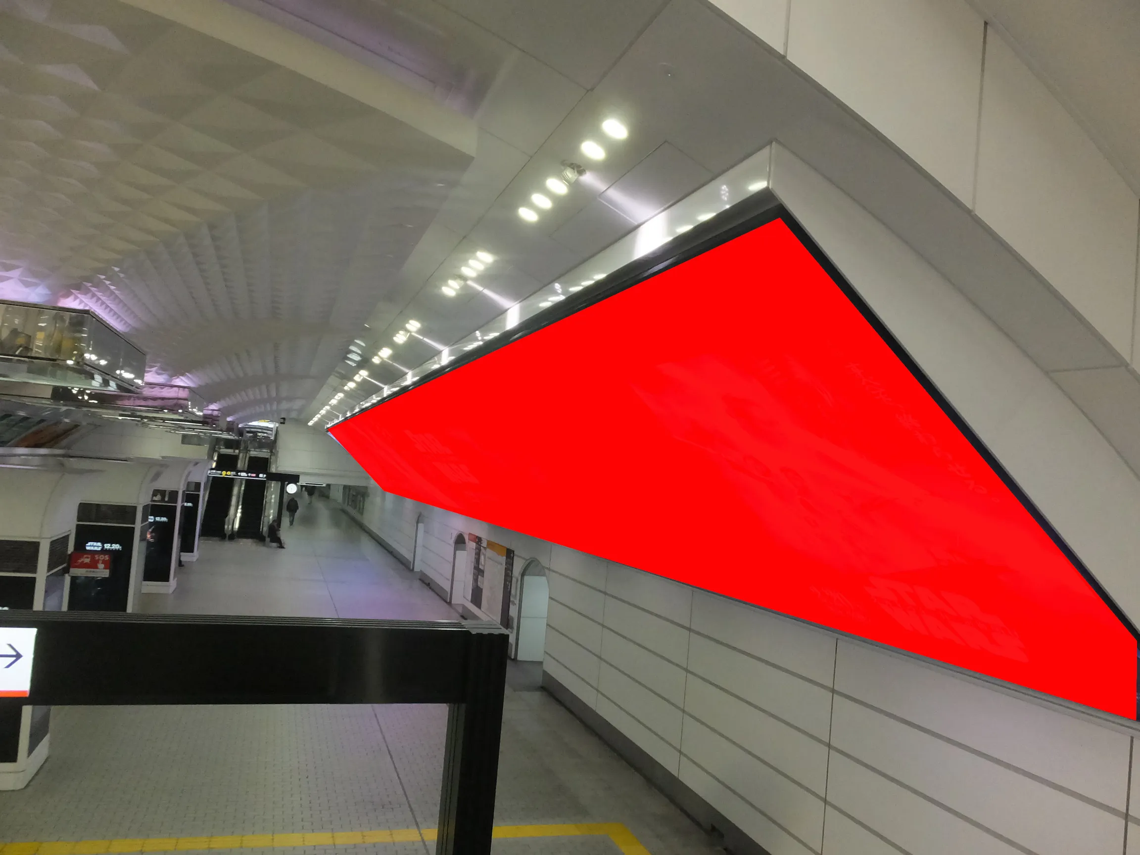横40メートル、縦4メートルの超大型デジタルサイネージ【Umeda Arch Vision】と新大阪方面へ向かうホームの南側に掲出される(ホーム側にはビジョンの設置はありません)【梅田ホームビジョン】とセット企画となり、大迫力の展開が可能です。