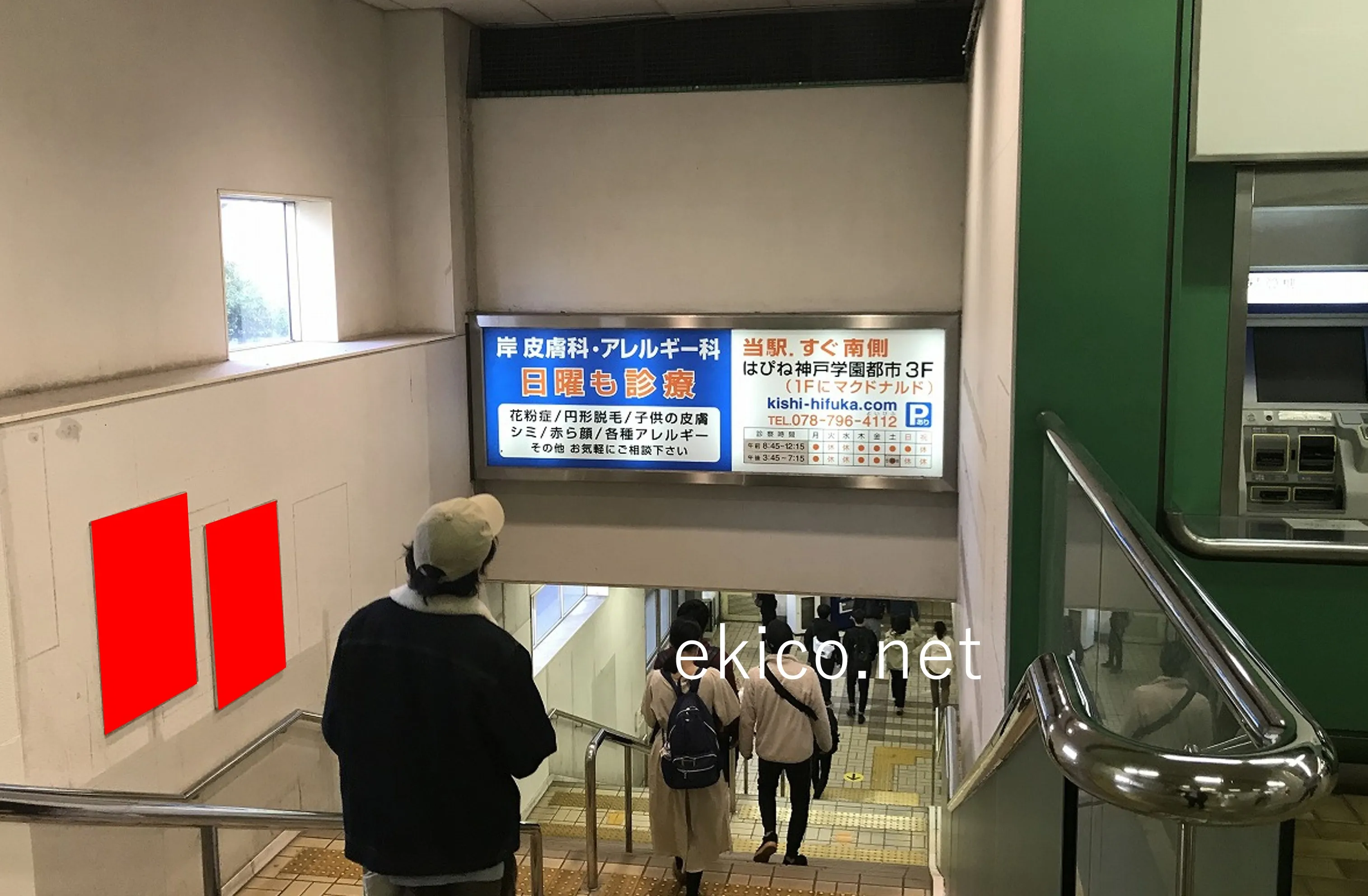 ホームに繋がる各階段壁面に2面ずつ掲出でき、学園都市駅を利用する方へアピールすることが可能です。