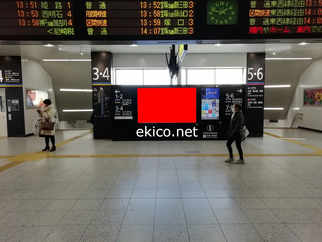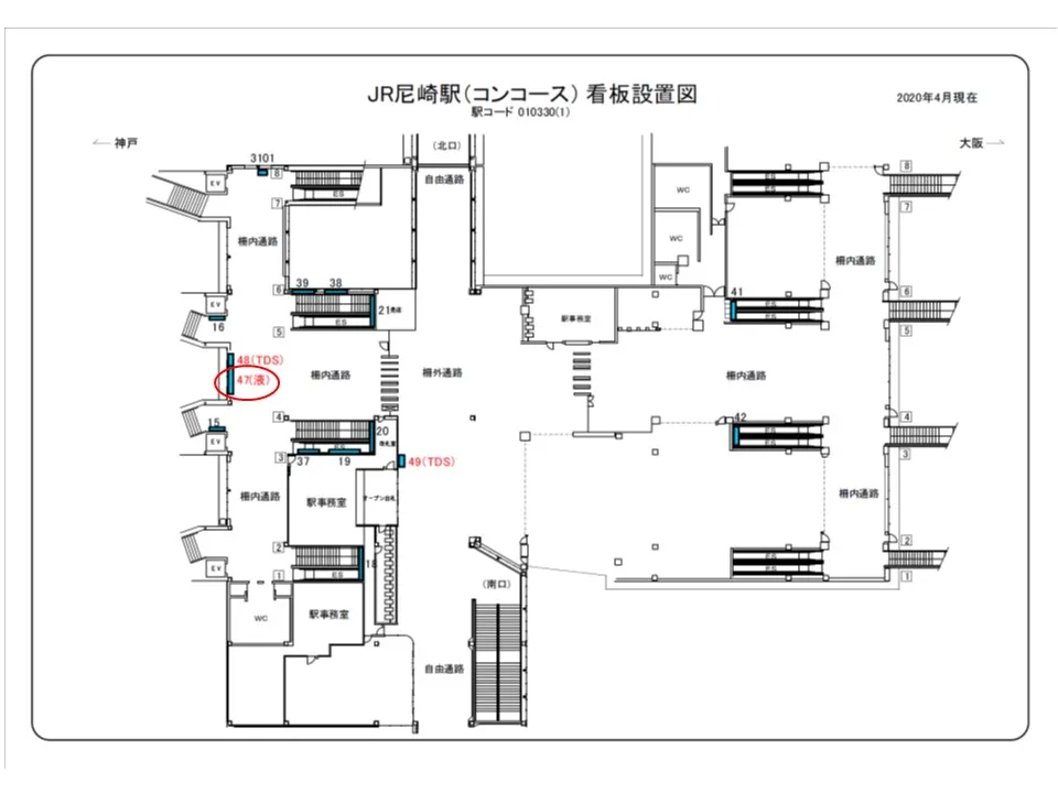 尼崎駅西改札口正面に60インチ縦3連での大型デジタルサイネージ掲出となります。