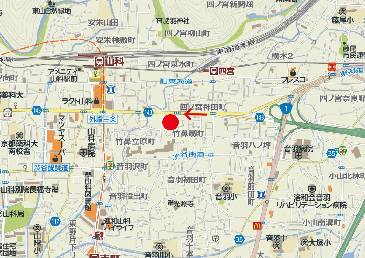 (位置 京都府京都市山科区四ノ宮神田町 付近)