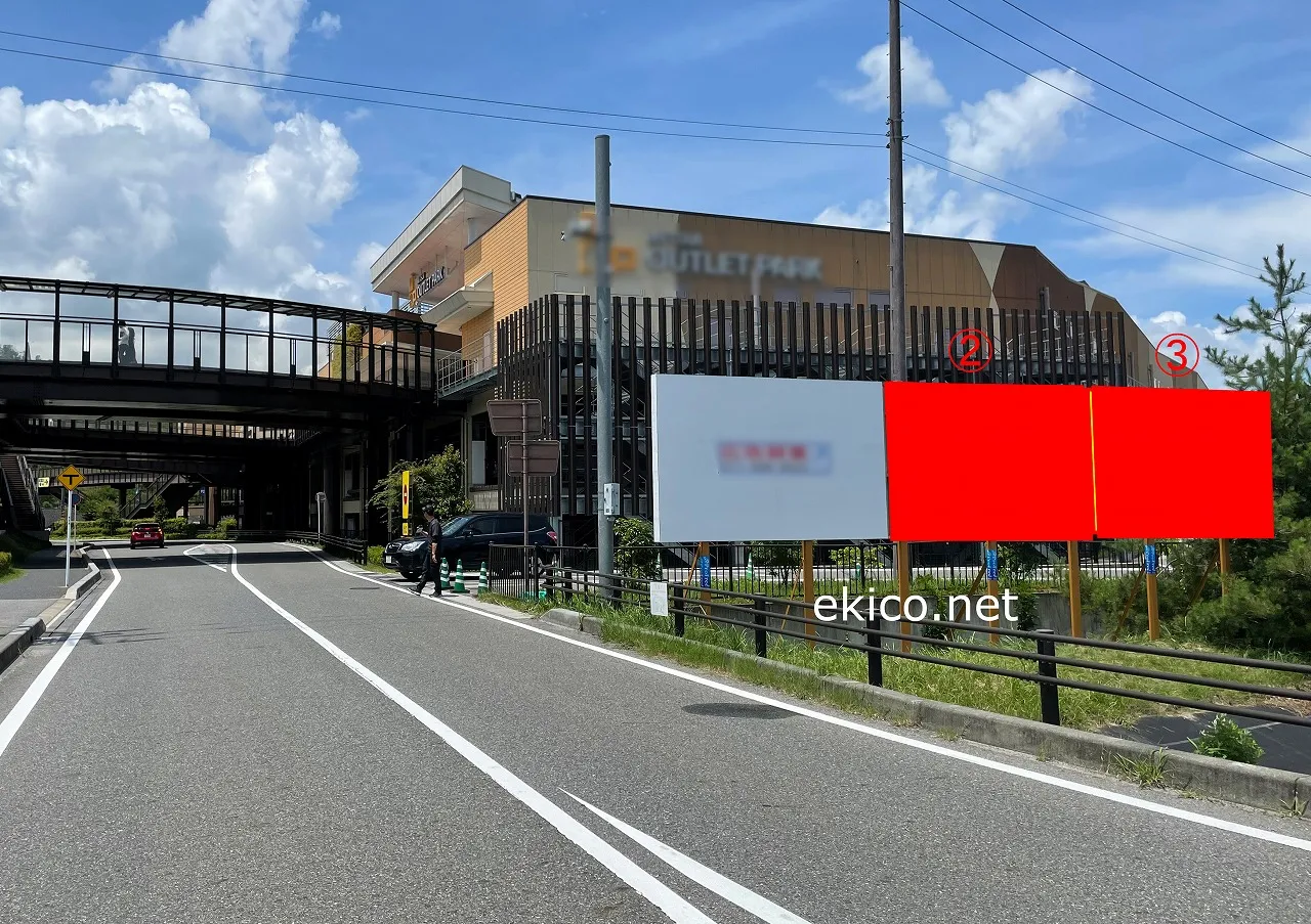 滋賀県蒲生郡竜王町薬師の三井アウトレットパーク竜王付近に位置する看板広告です。
