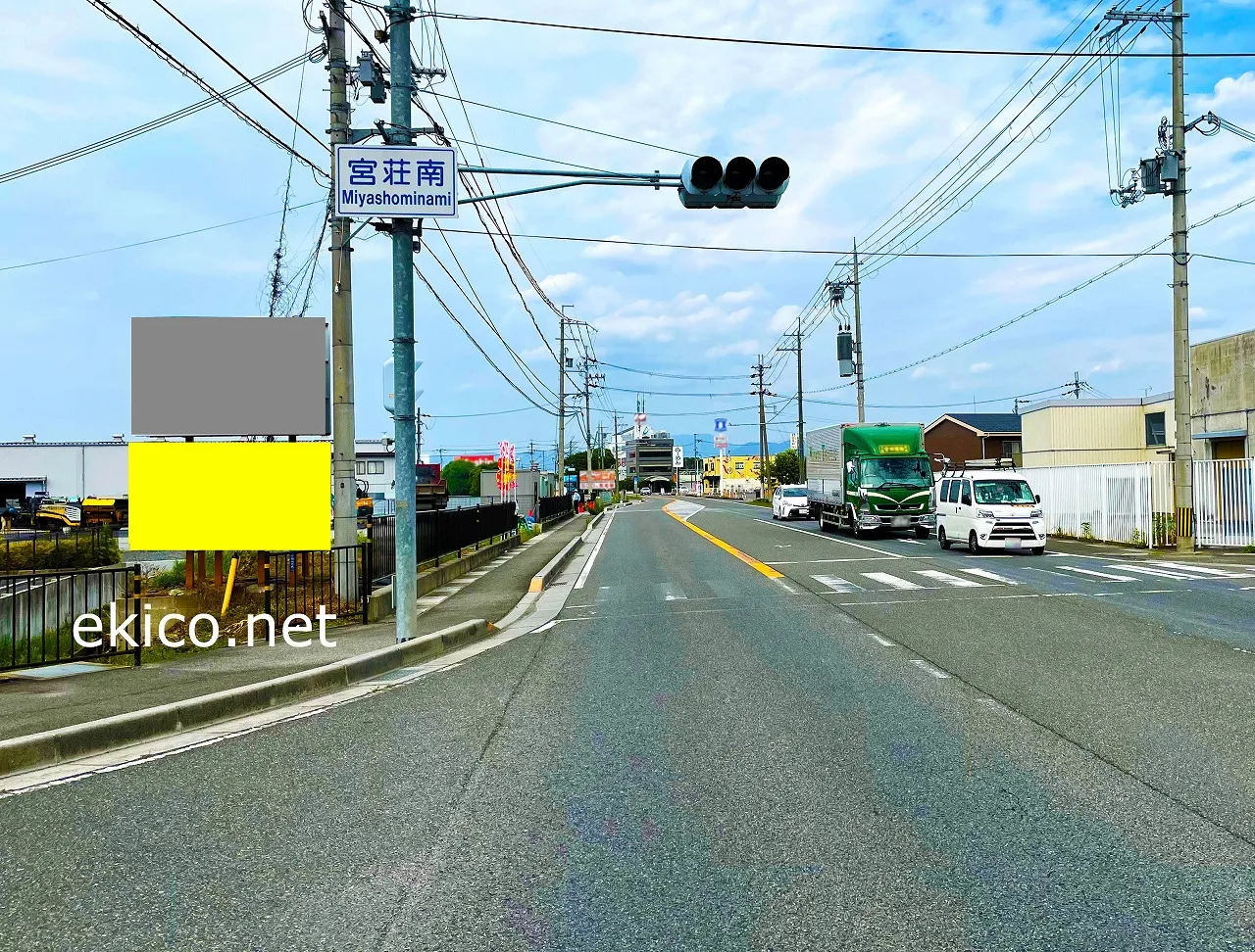 滋賀県東近江市宮荘南交差点付近に位置する看板広告です。