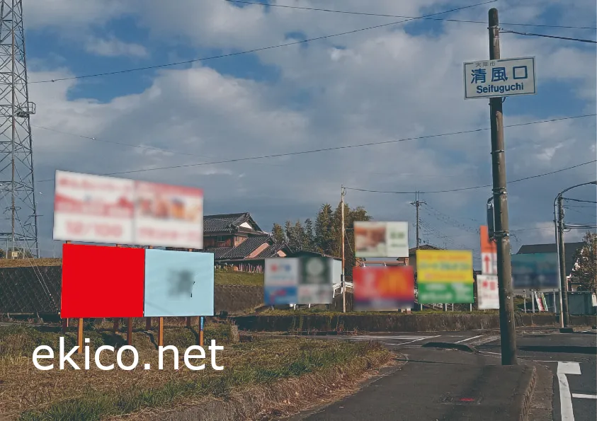 滋賀県大津市真野普門3丁目の清風口交差点付近(堅田方面)に位置する看板広告です。