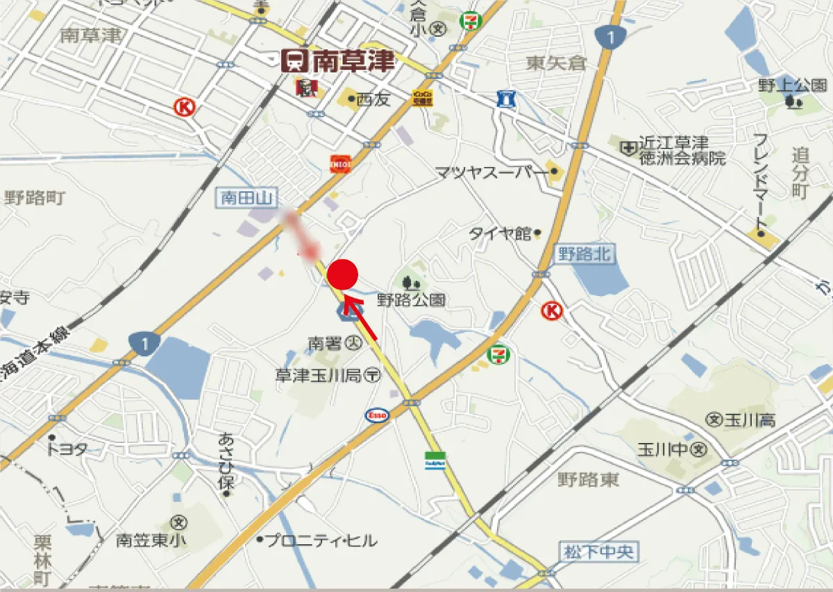 滋賀県草津市野路7丁目の県道43号沿い南田山付近に位置する看板広告です。