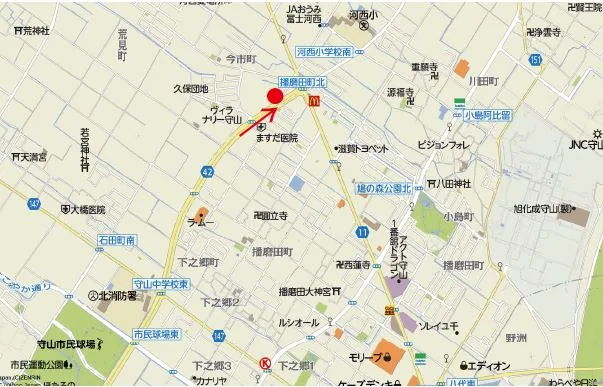 滋賀県守山市播磨田町の県道42号沿い播磨田町北付近に位置する看板広告です。