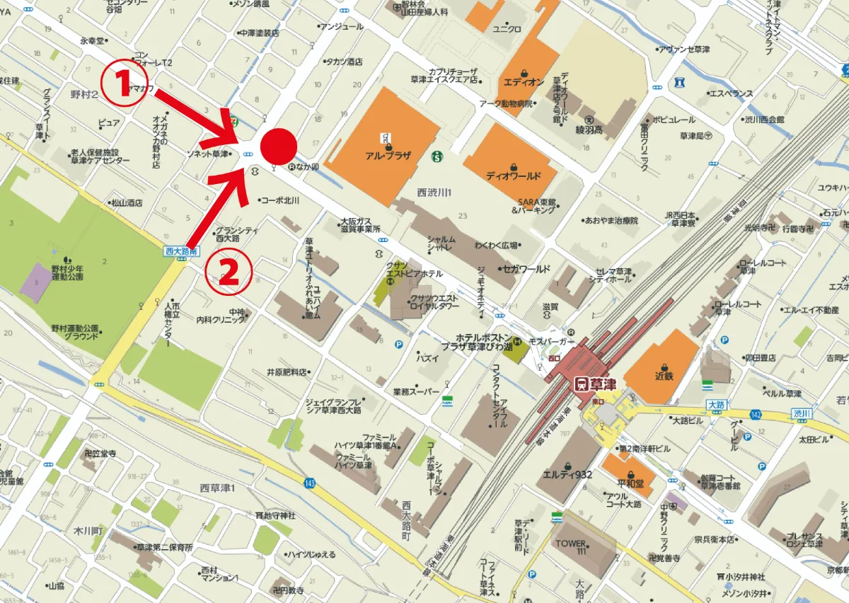 滋賀県草津市の西大路交差点付近に位置する看板広告です。