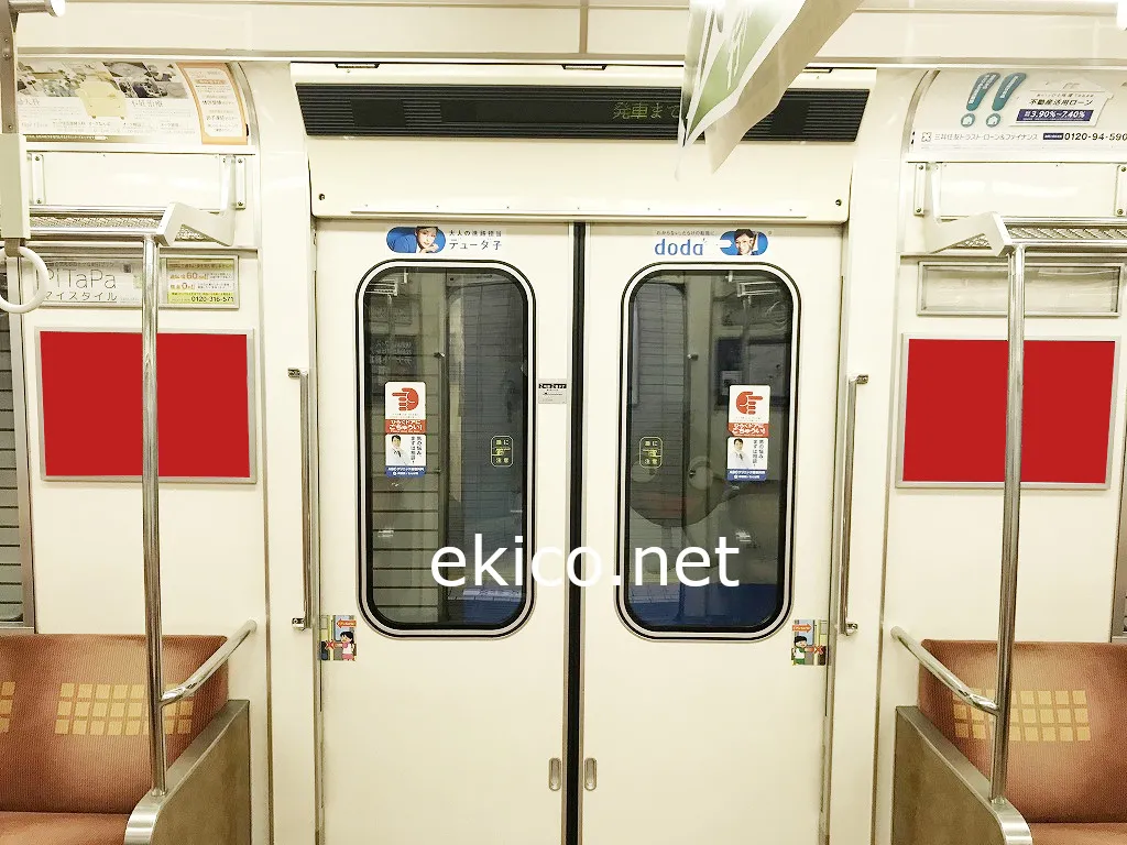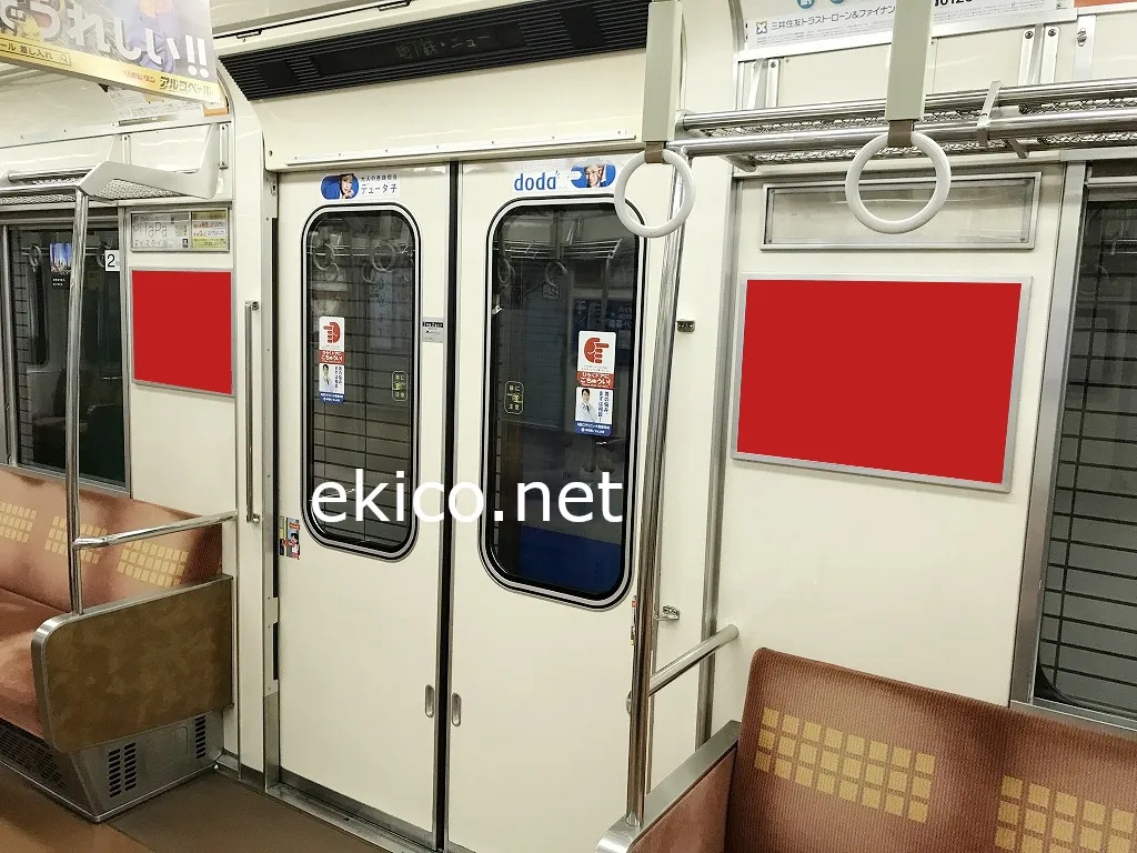 ドアの両サイドに掲出されます。目線の高さに設置されているため、立って乗車している人や、乗降時に目にする広告です。