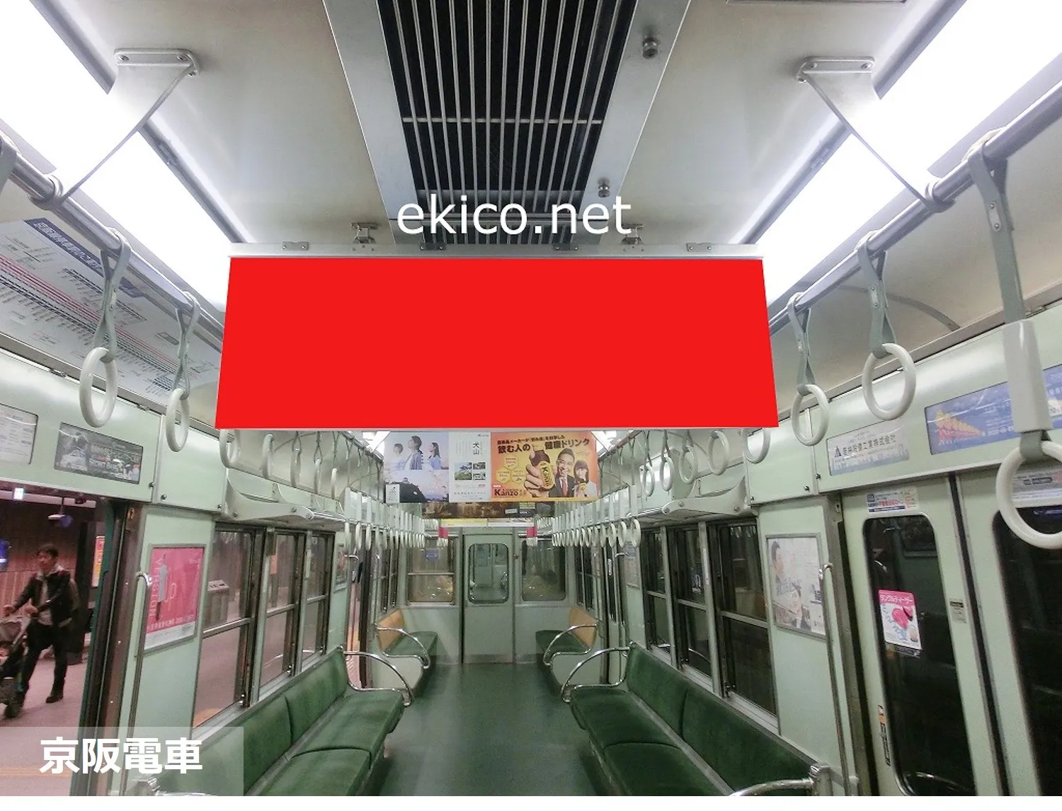 ・ワイドサイズのポスター実施は、車両内でひときわ目立ちます。