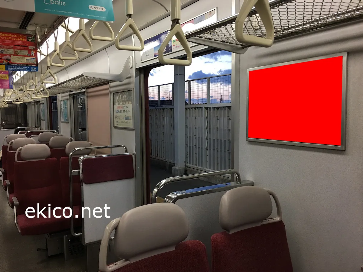 目線の高さに設置されているため、立って乗車している人や、乗降時に目にする広告です。