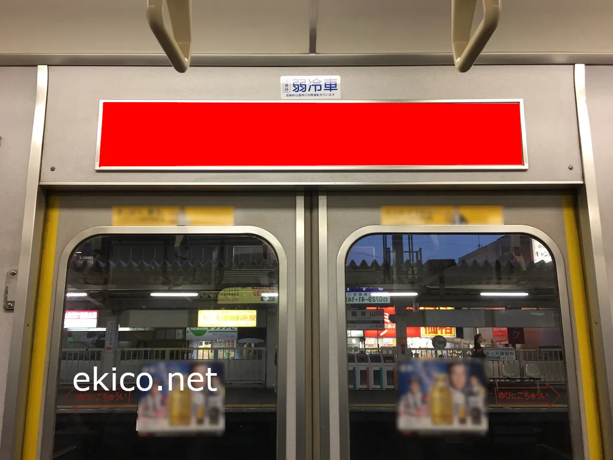 ドア上に掲出されるので乗り降りの際や、混雑時に目に触れることができます。また、1か月間掲出されるため、長期間で多くの人の目に届き、視認率の高い媒体です。大阪を中心に、広い範囲での掲出が可能です。