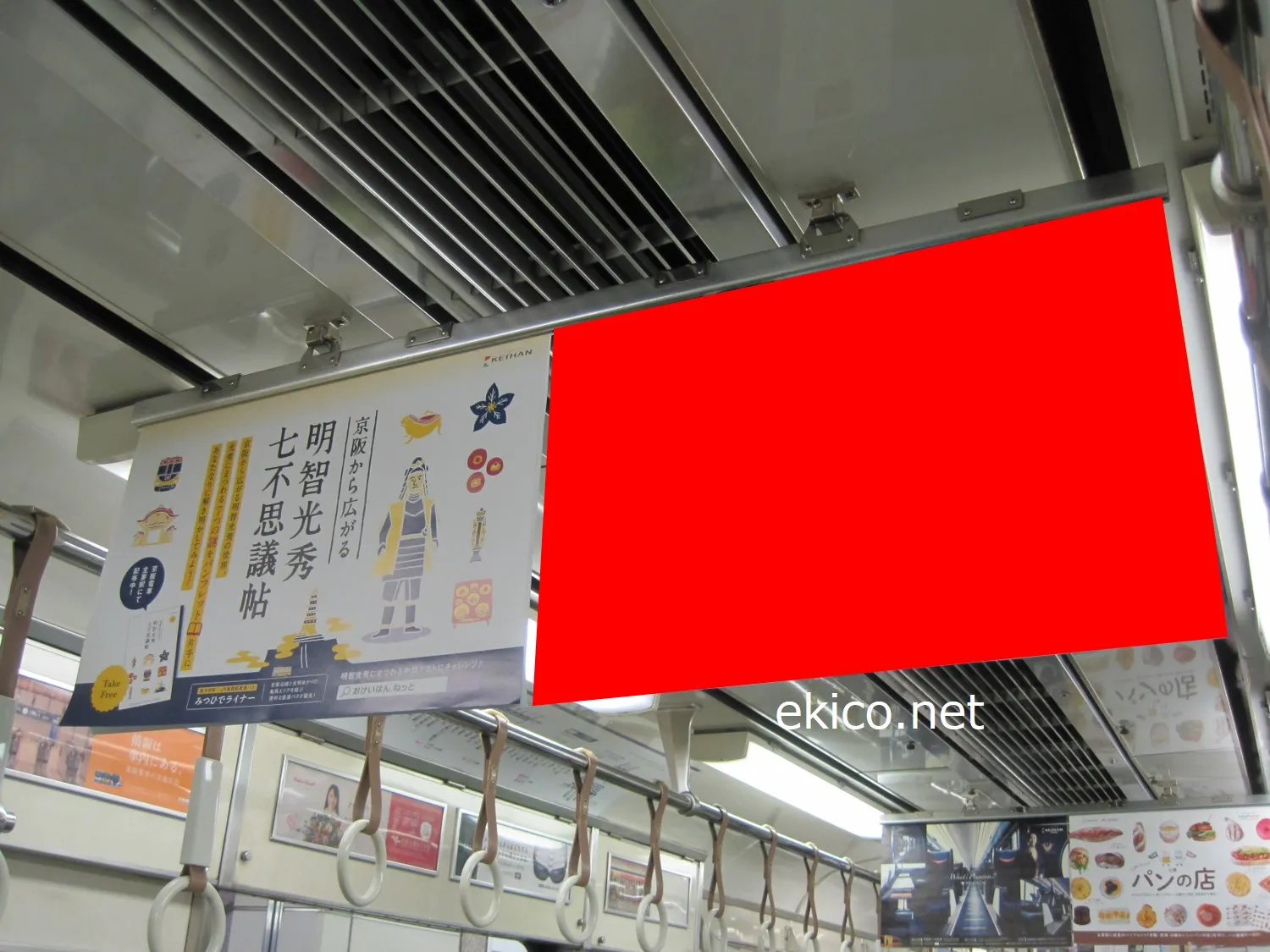 京都府と滋賀県を走る列車に掲出されます。限定された路線なので、ターゲットを絞ったPRにおすすめです。