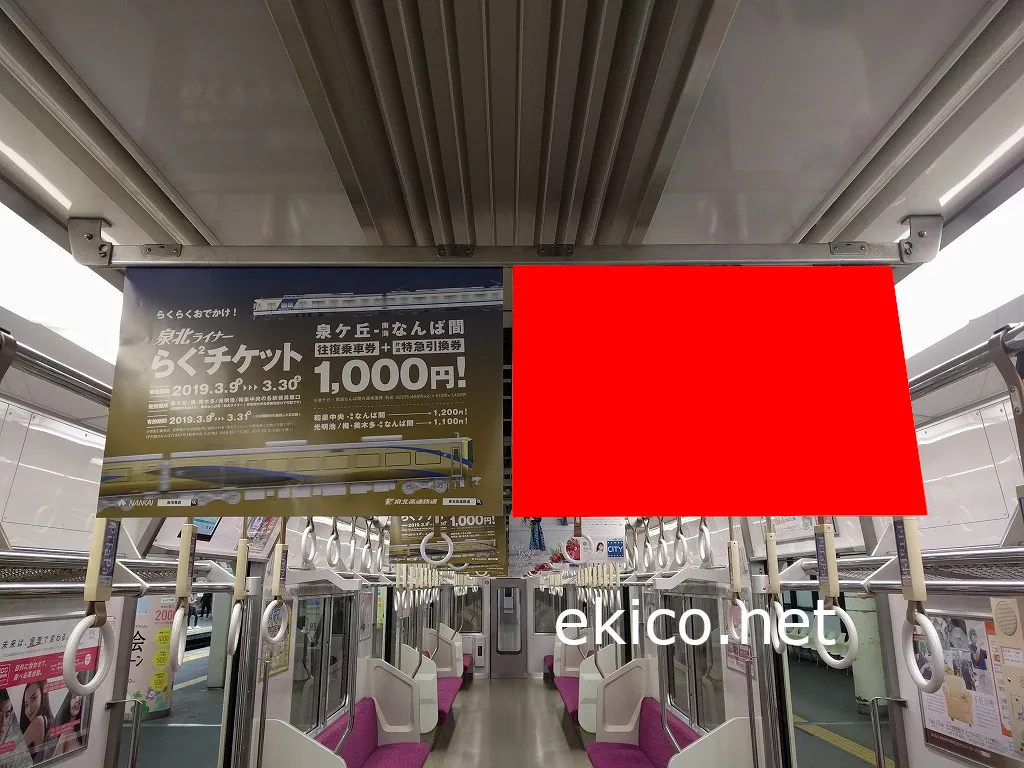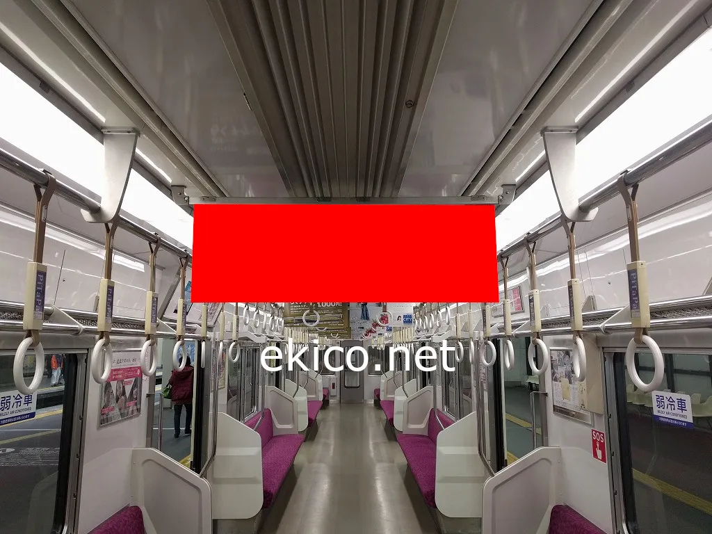 電車広告の定番商品です。7日間での掲出となるため、イベント告知などの宣伝にピッタリの媒体です。通勤・通学などの毎日往復利用される利用者への訴求効果は高く、車両の中心に掲出されます。