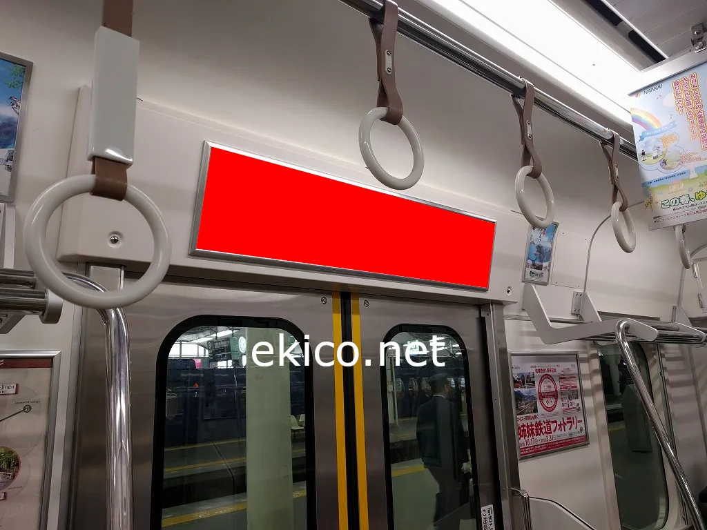 ドア上に掲出されるので乗り降りの際や、混雑時に目に触れることができます。また、1か月間掲出されるため、長期間で多くの人の目に届き、視認率の高い媒体です。