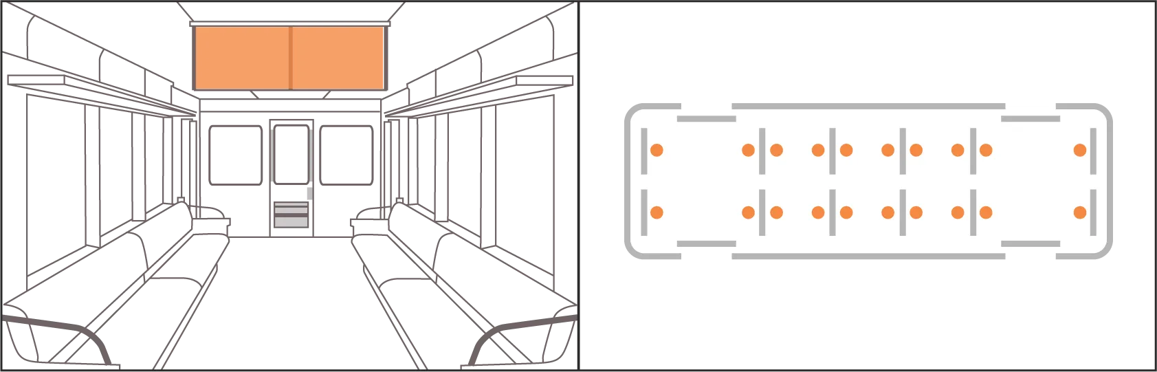 大阪国際空港(伊丹空港)利用者や地元の足として利用される大阪モノレールでPRする時の定番です。北摂エリアを走るモノレールの車内に、集中掲出感のある広告露出ができます。