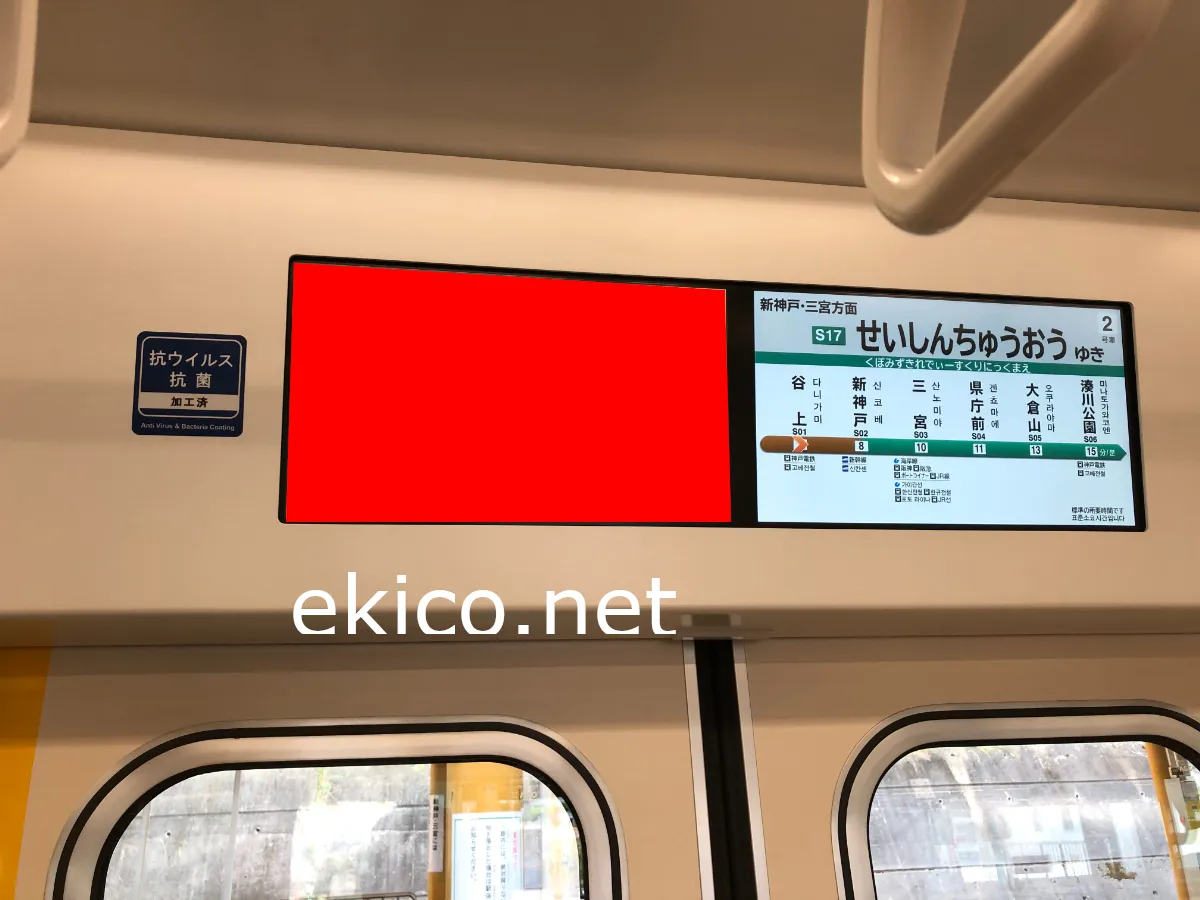 神戸地下鉄西神山手線を走行する6000刑車両に搭載されている車内ビジョンです。